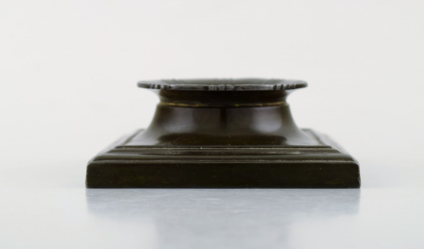 Just Andersen (1884-1943). Tre art deco lysestager i disko metal. Modelnummer: 1802. I flot stand. Stemplet. Måler: 8,5 x 3,5 cm.