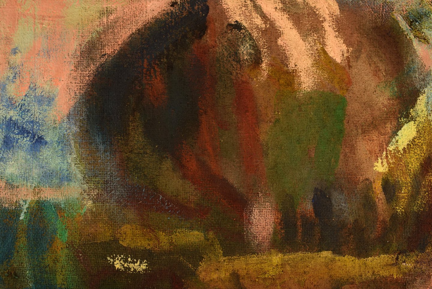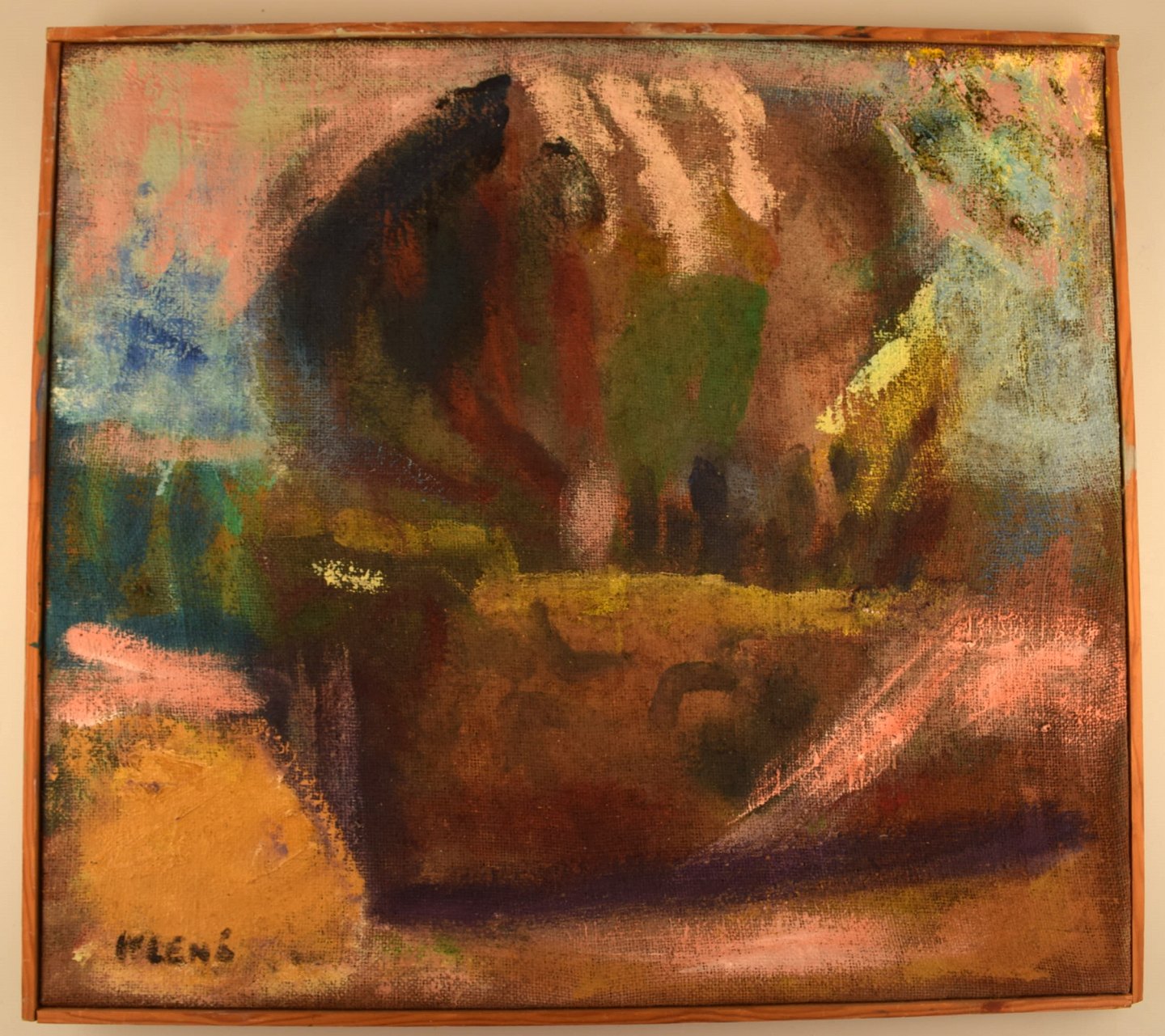 Evgenij Klenø (1921-2005). Dansk maler. Modernistisk landskab. Olie på lærred. 1960'erne. I flot stand. Signeret. Lærredet måler: 65 x 58 cm. Rammen måler: 1 cm.