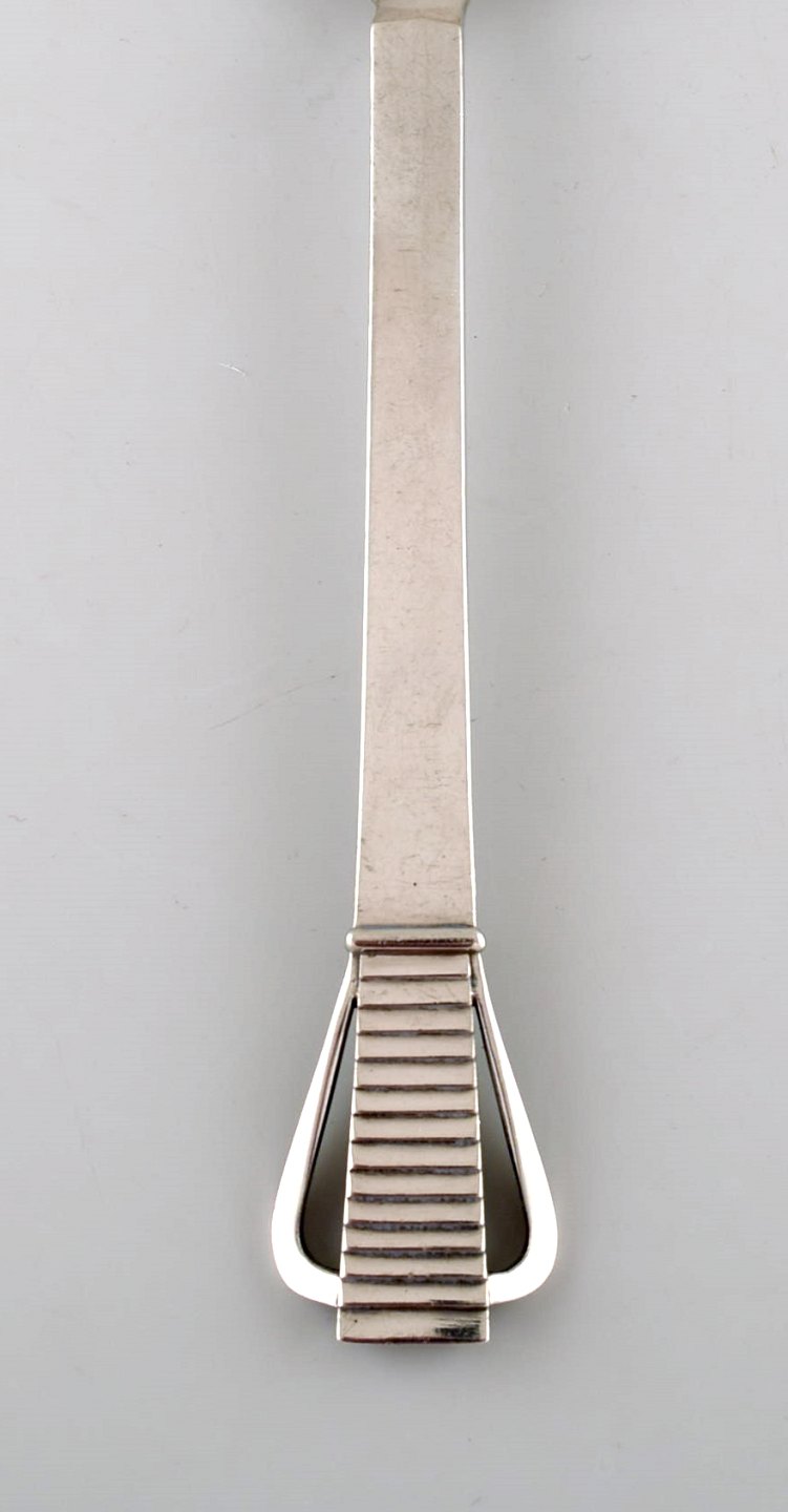 Georg Jensen Parallel/Relief. Stor serveringsske i sterlingsølv. 1933-1944. 2 stk på lager. Måler: 23 cm. I flot stand stand. Tidligt stempel: 1933-1944.