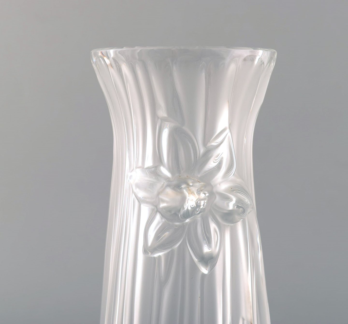 Stor Lalique vase i kunstglas med blomsterdekoration. Dateret efter 1945.