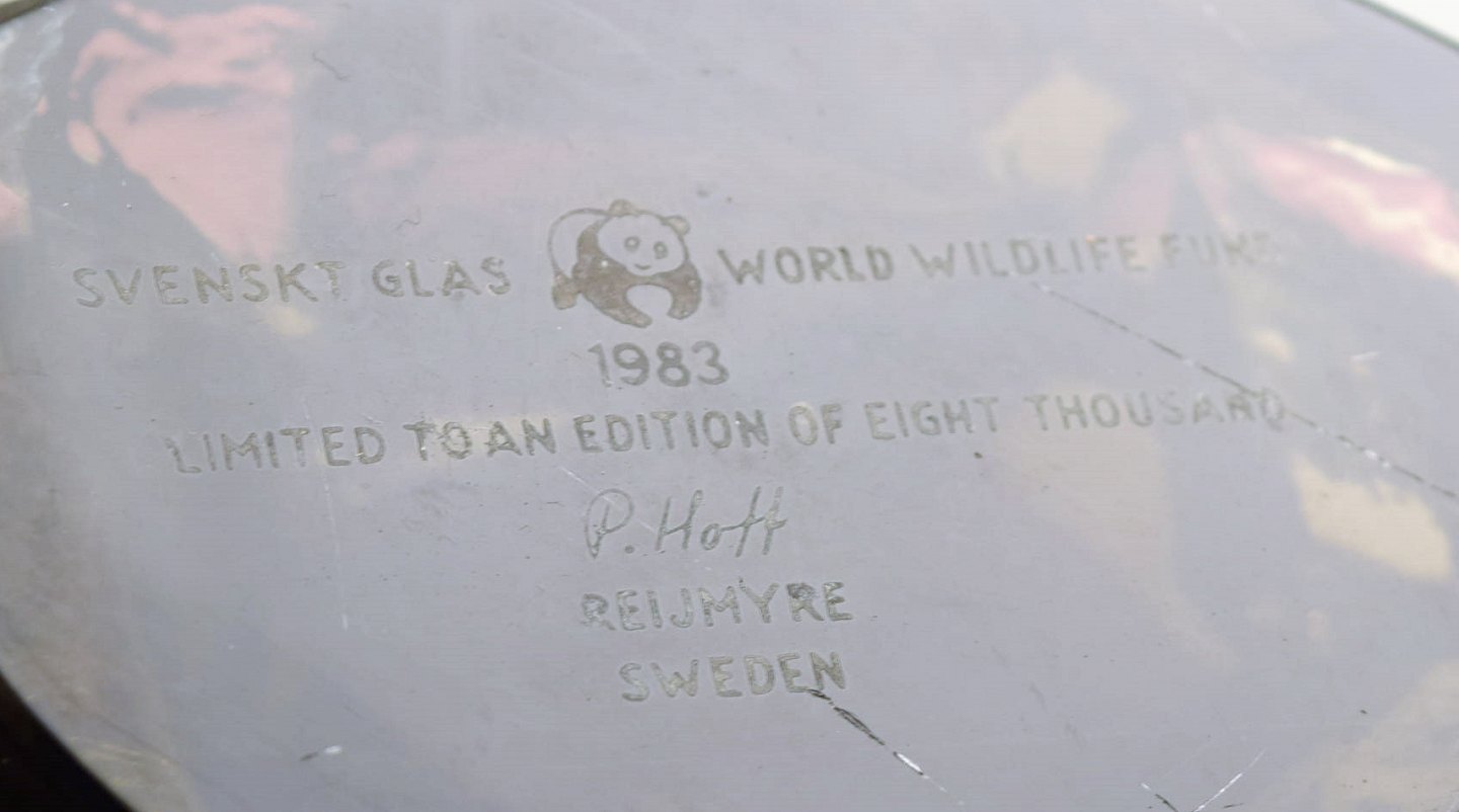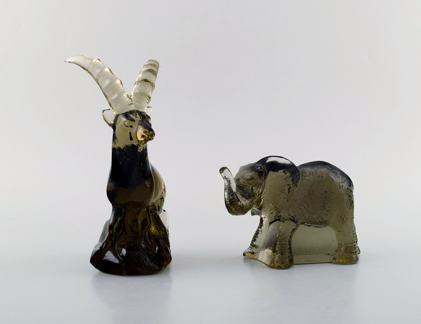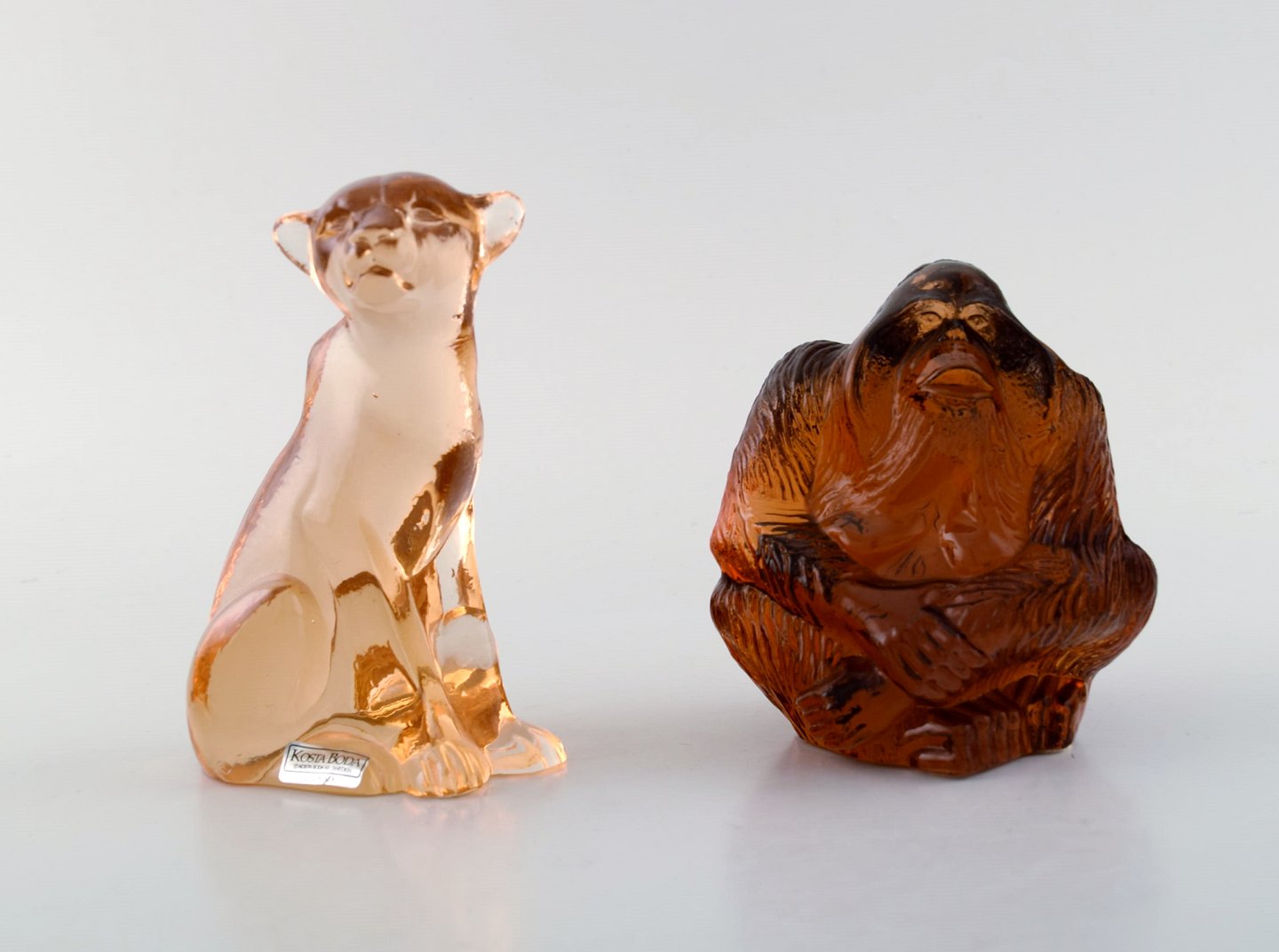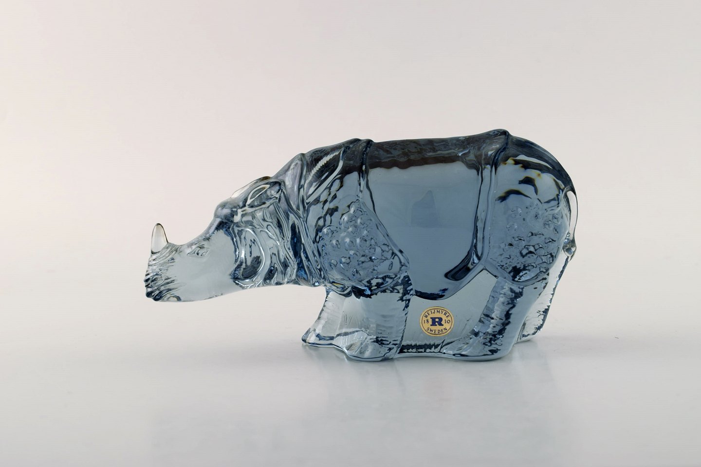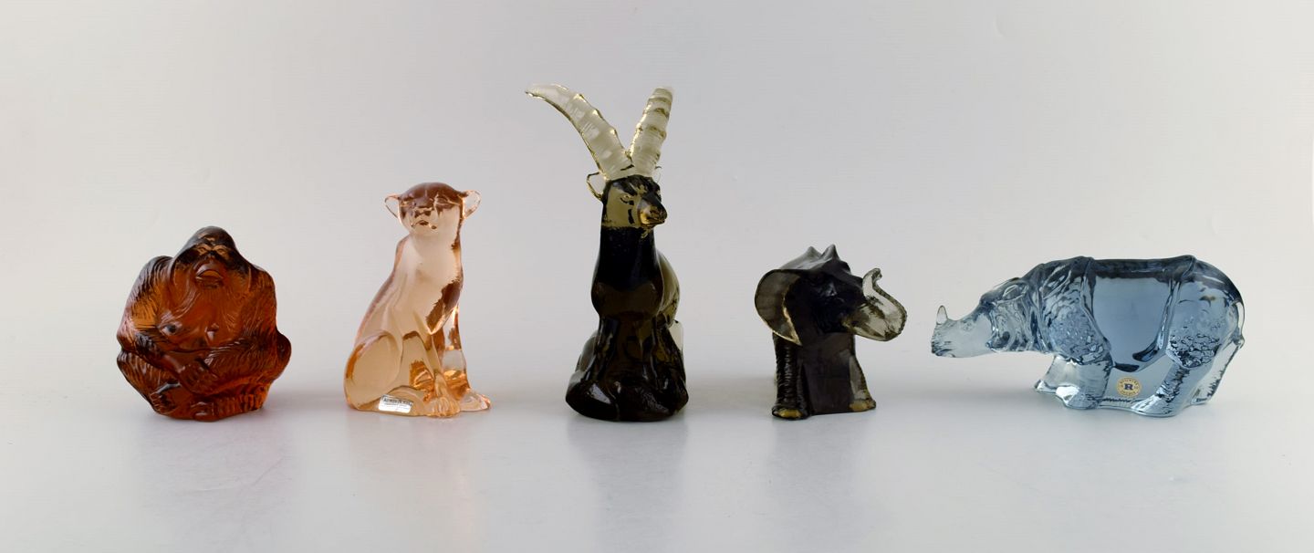 Paul Hoff for "Svenskt Glass". Five art glass figures in shape of a cheetah, capricorn, rhino, orangutan and elefant. WWF. Mid 20th century.