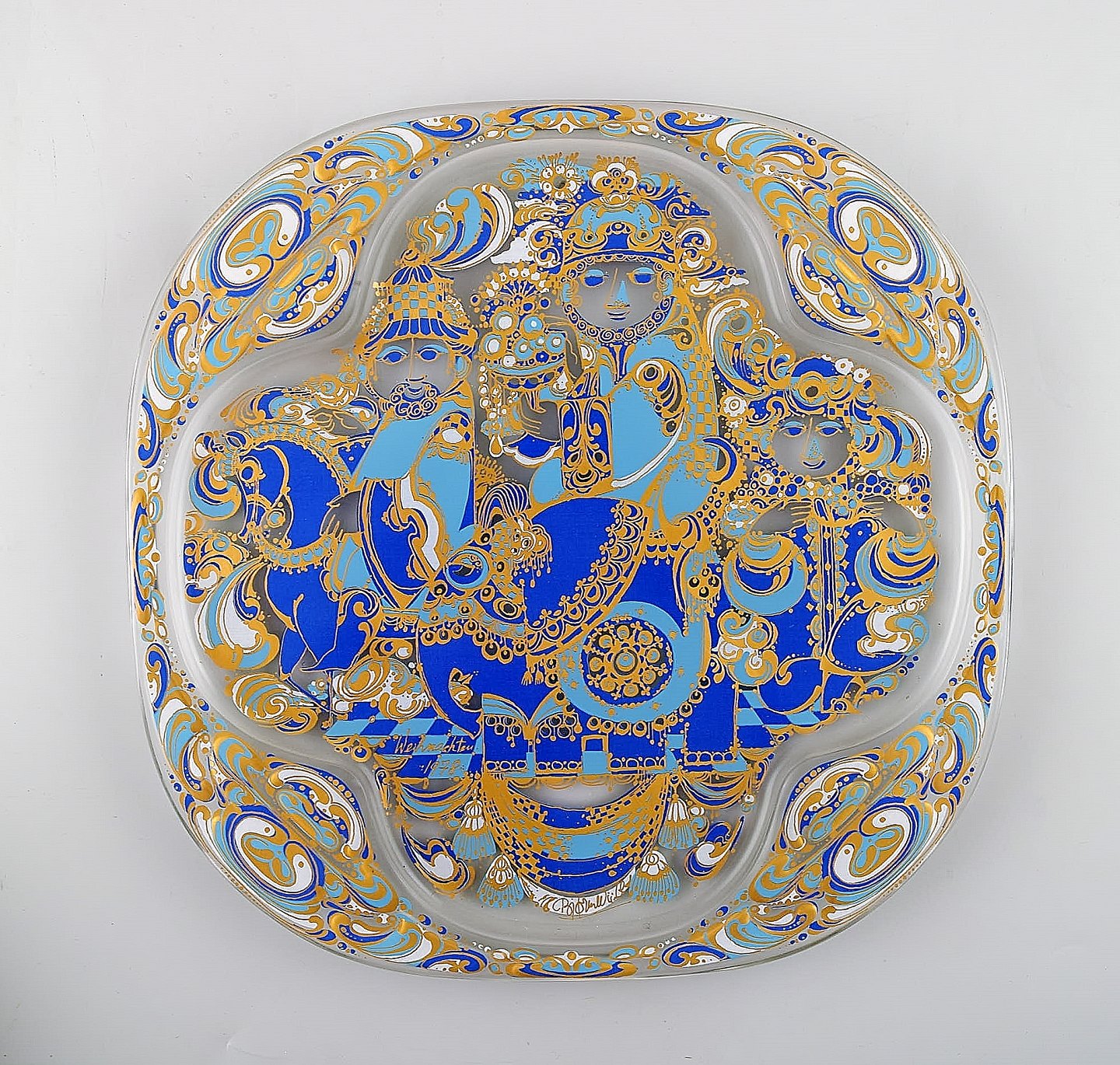 Bjørn Wiinblad for Rosenthal. Sæt på fem års-tallerkener i kunstglas. Dateret 1977-81.