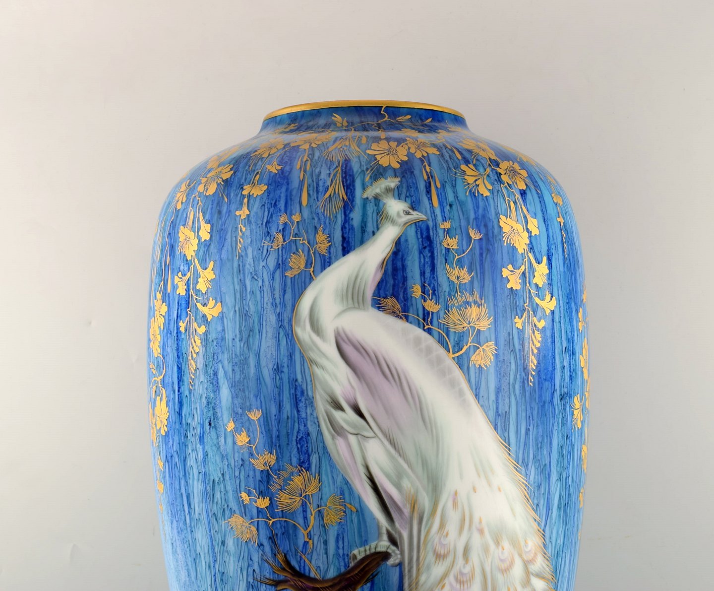 Heinrich, SELB Bavaria Germany. Stor håndmalet porcelænsvase med påfugl og blade i gulddekoration. 1960'erne. I flot stand. Stemplet. Måler: 55 x 31,5 cm.