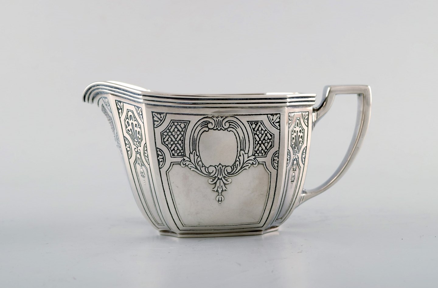 Tiffany & Company (New York). Kaffeservice i sterlingsølv. Klassicistisk stil, 1870'erne. Bestående af kaffekande, sukkerskål og flødekande. I flot stand. Stemplet. Kaffekanden måler: 22,5 x 21,5 cm.