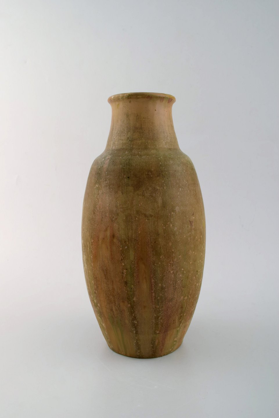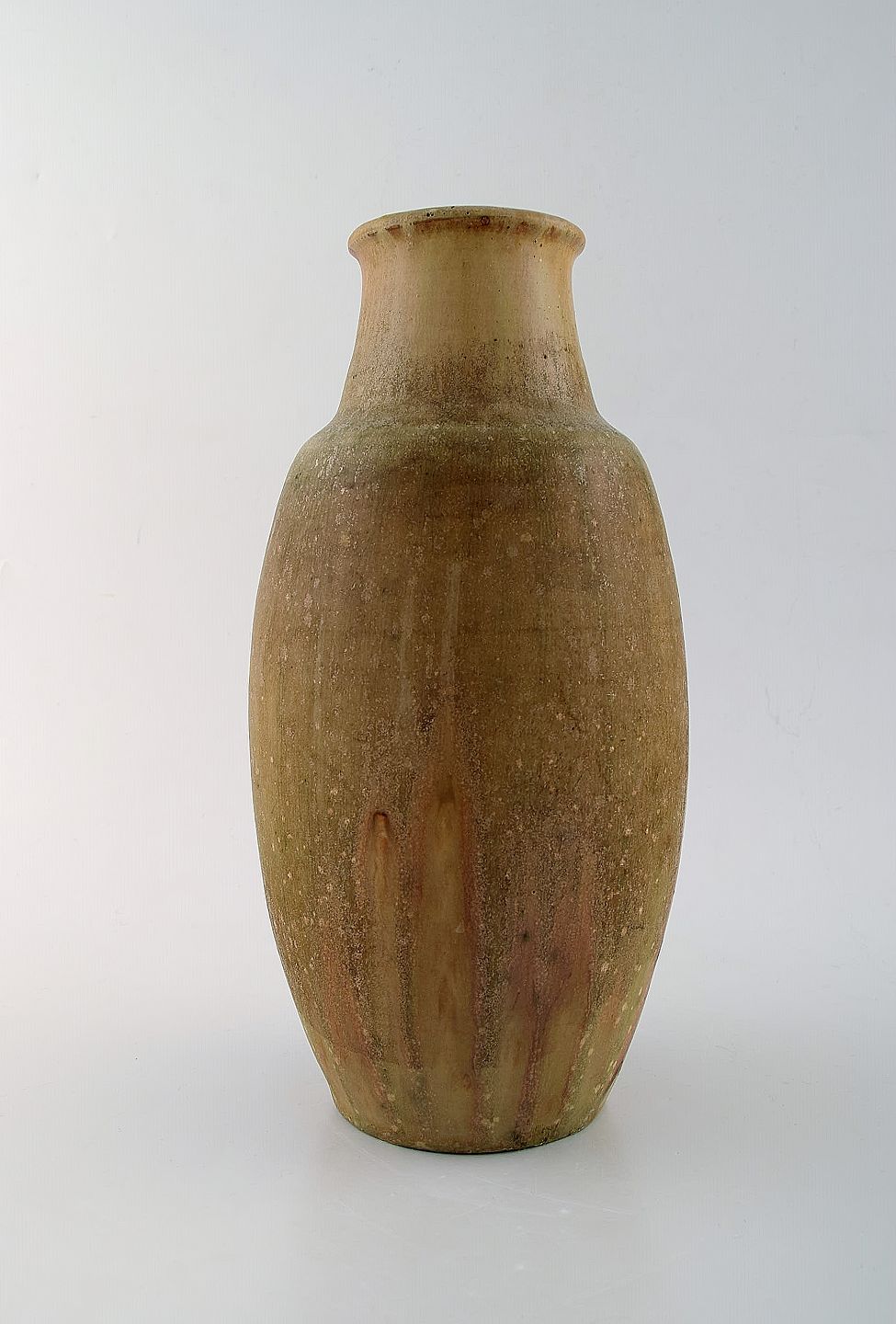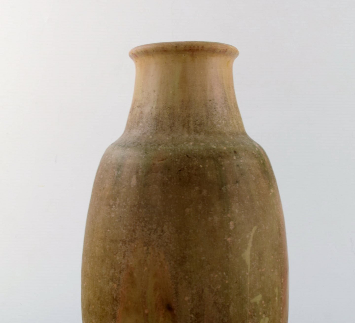 Patrick Nordstrøm for Royal Copenhagen. Stor vase i glaseret stentøj. Smuk glasur i lyse jordnuancer. 1930'erne. Måler: 28 x 15 cm. Stemplet. I flot stand.