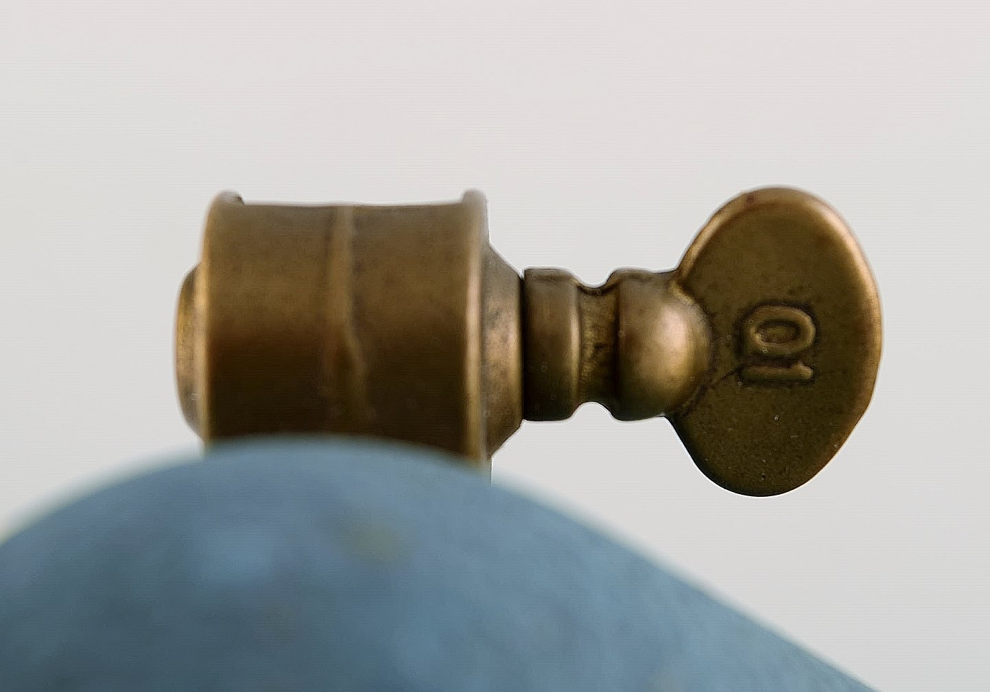 Scandinavian design. Adjustable desk lamp. Foot in patinated brass. Light blue screen. 1950's. Measures: 26 x 24 cm. In very good condition.