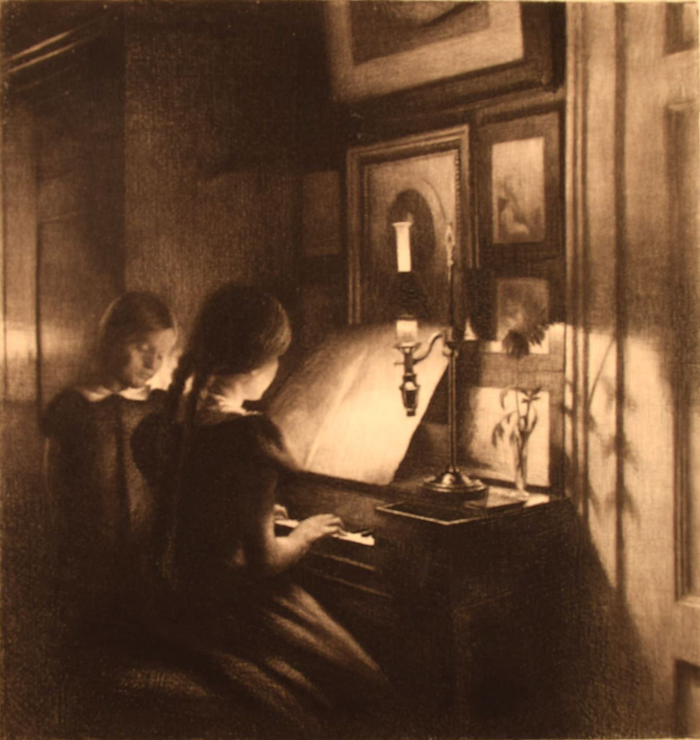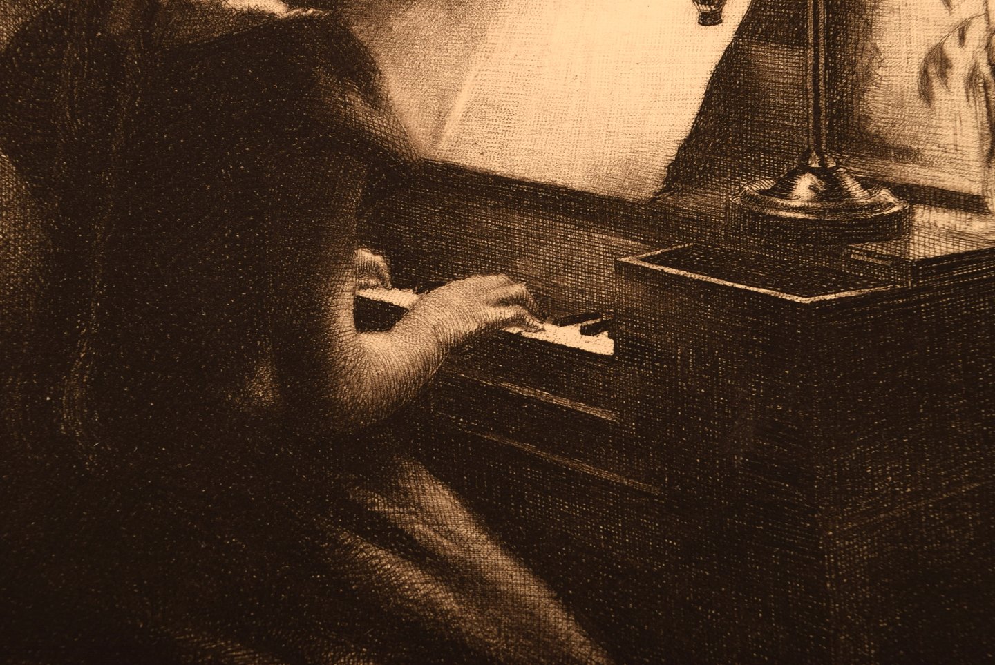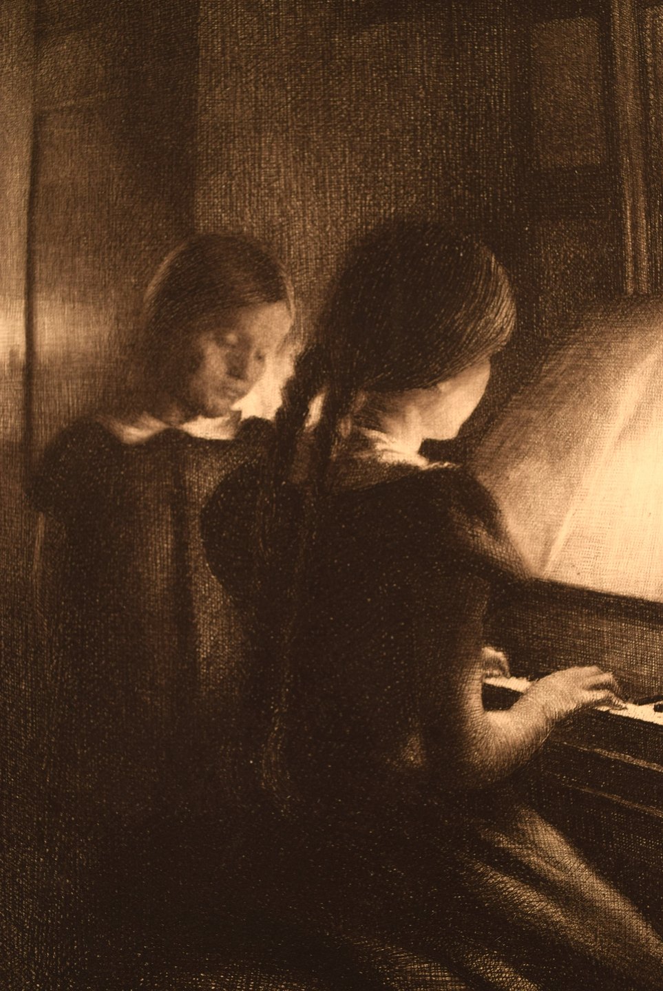 Peter Ilsted (1861-1933). Interiør med to piger ved klaveret. Radering. Ca. 1900. Signeret i blyant. I flot stand. Lysmål: 21 x 20 cm. Totalmål: 45 x 40 cm.