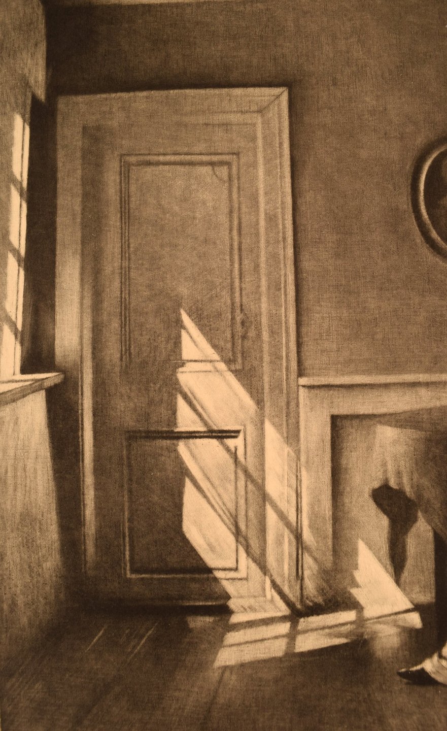 Peter Ilsted (1861-1933). Interiør med siddende kvinde. Sjælden radering. Ca. 1900. Lysmål: 35,5 x 32 cm. Totalmål: 61 x 46 cm. I flot stand.