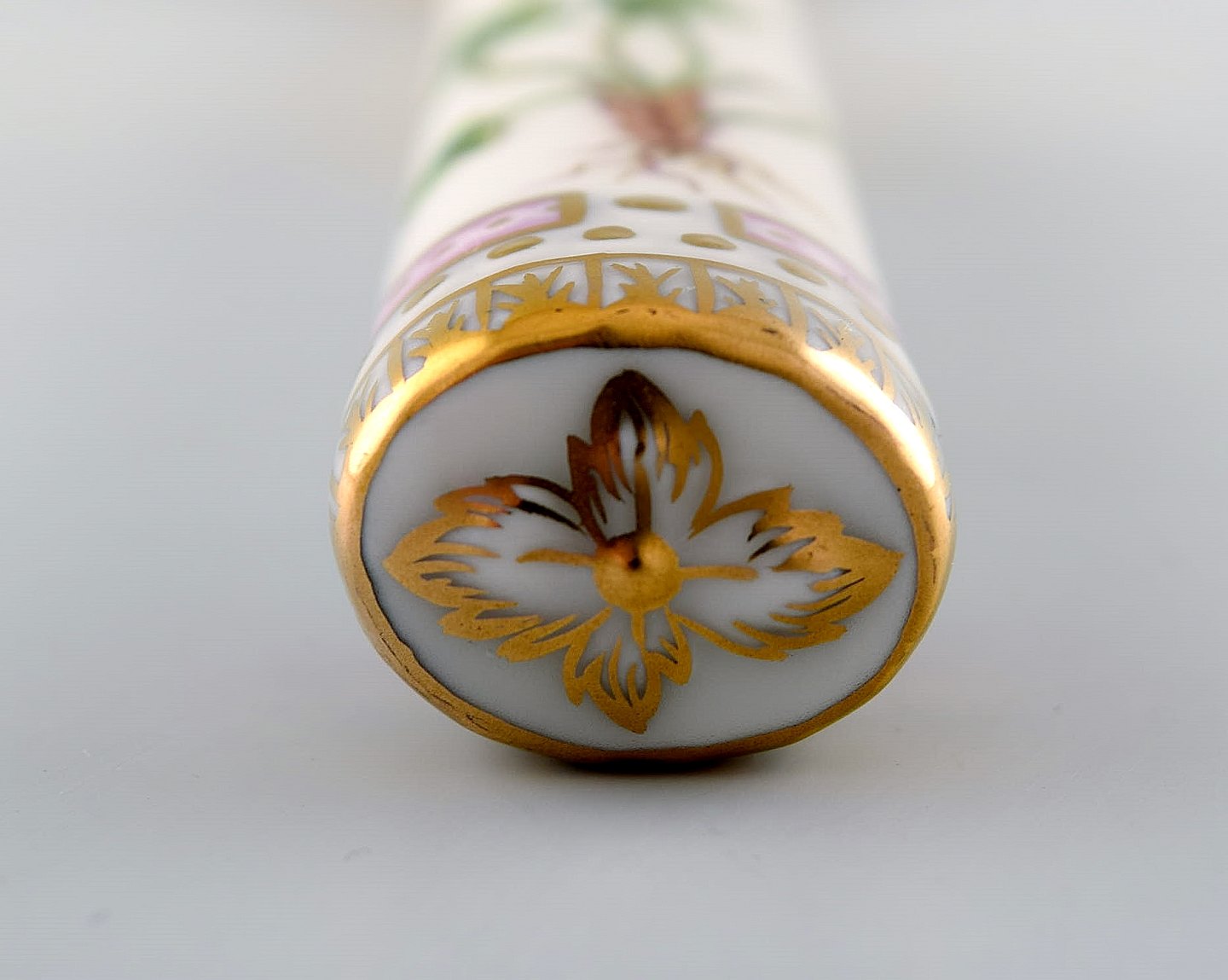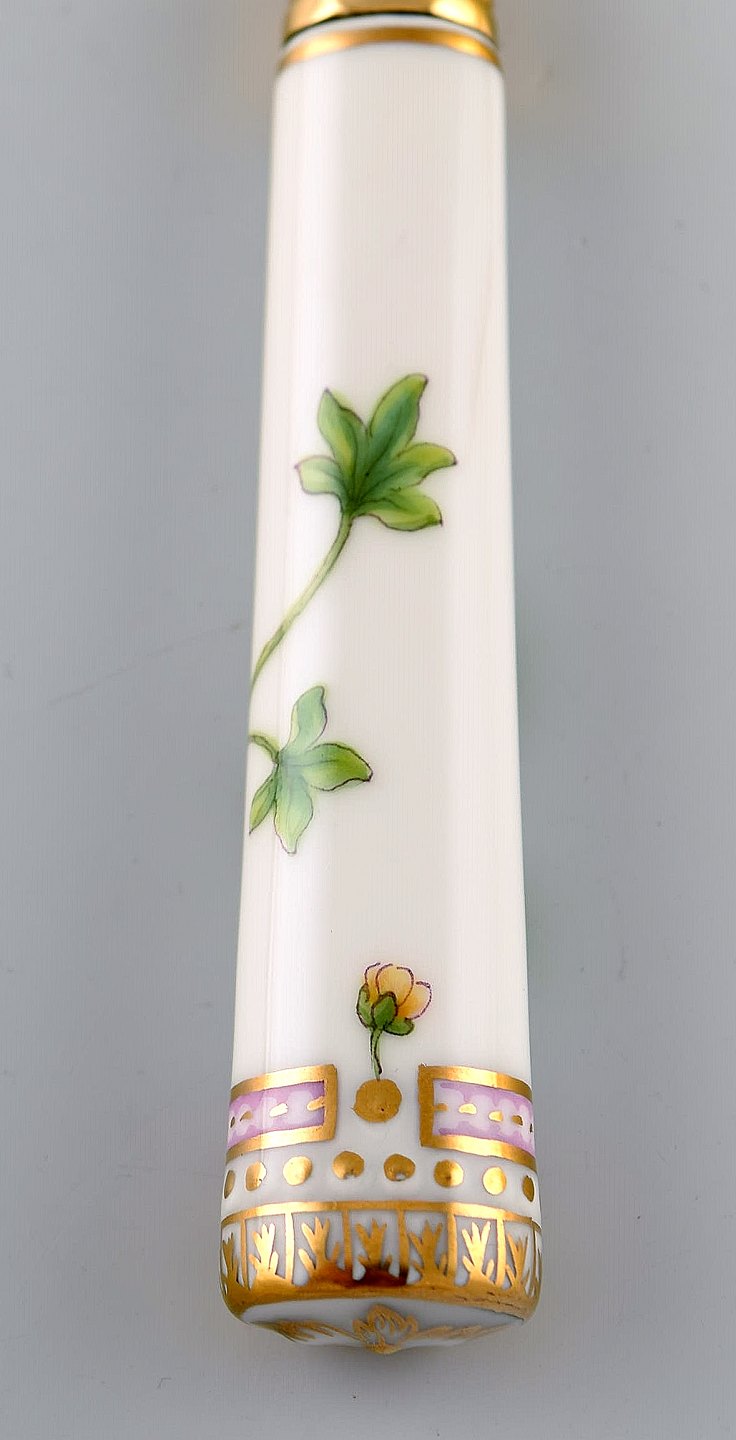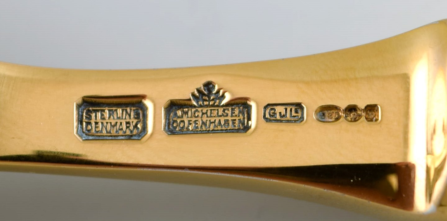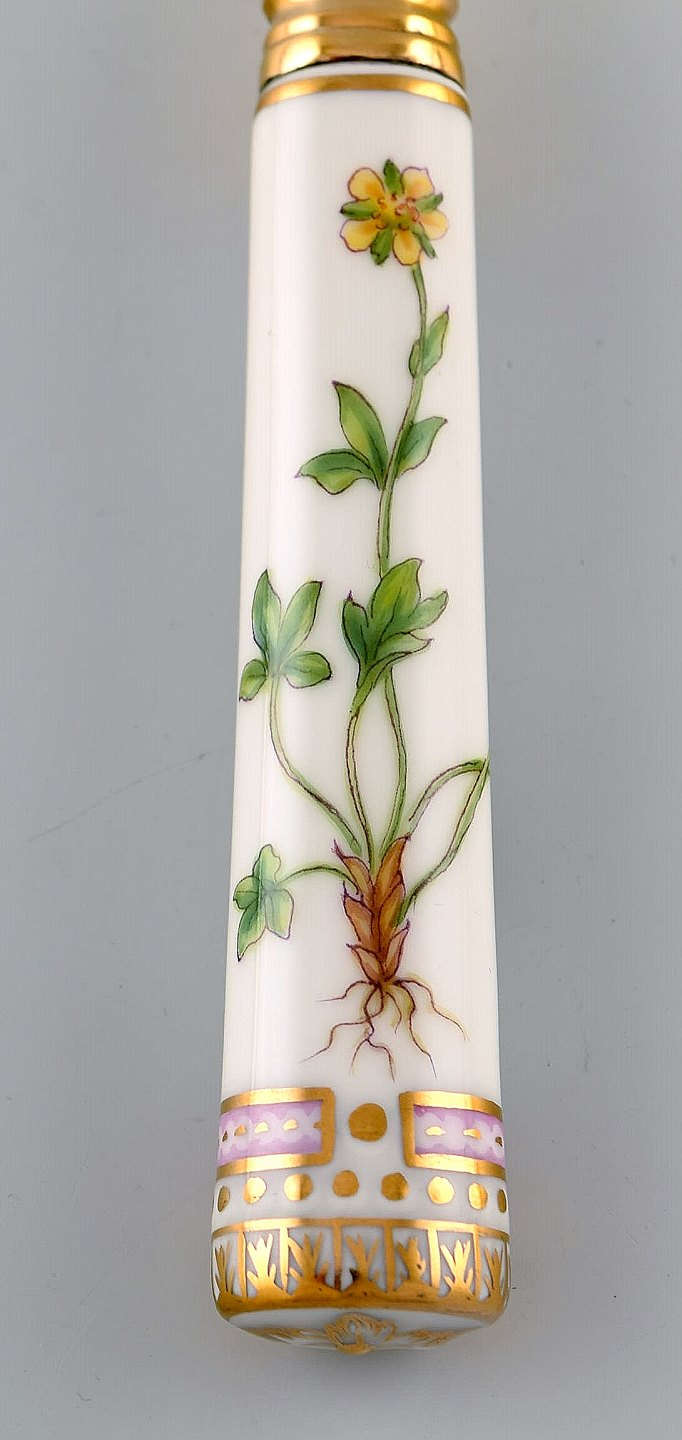Michelsen for Royal Copenhagen. "Flora Danica" spiseske af forgyldt sterlingsølv. Skafte af porcelæn dekoreret i farver og guld med blomster. I flot stand. Stemplet. Måler: 21 cm.