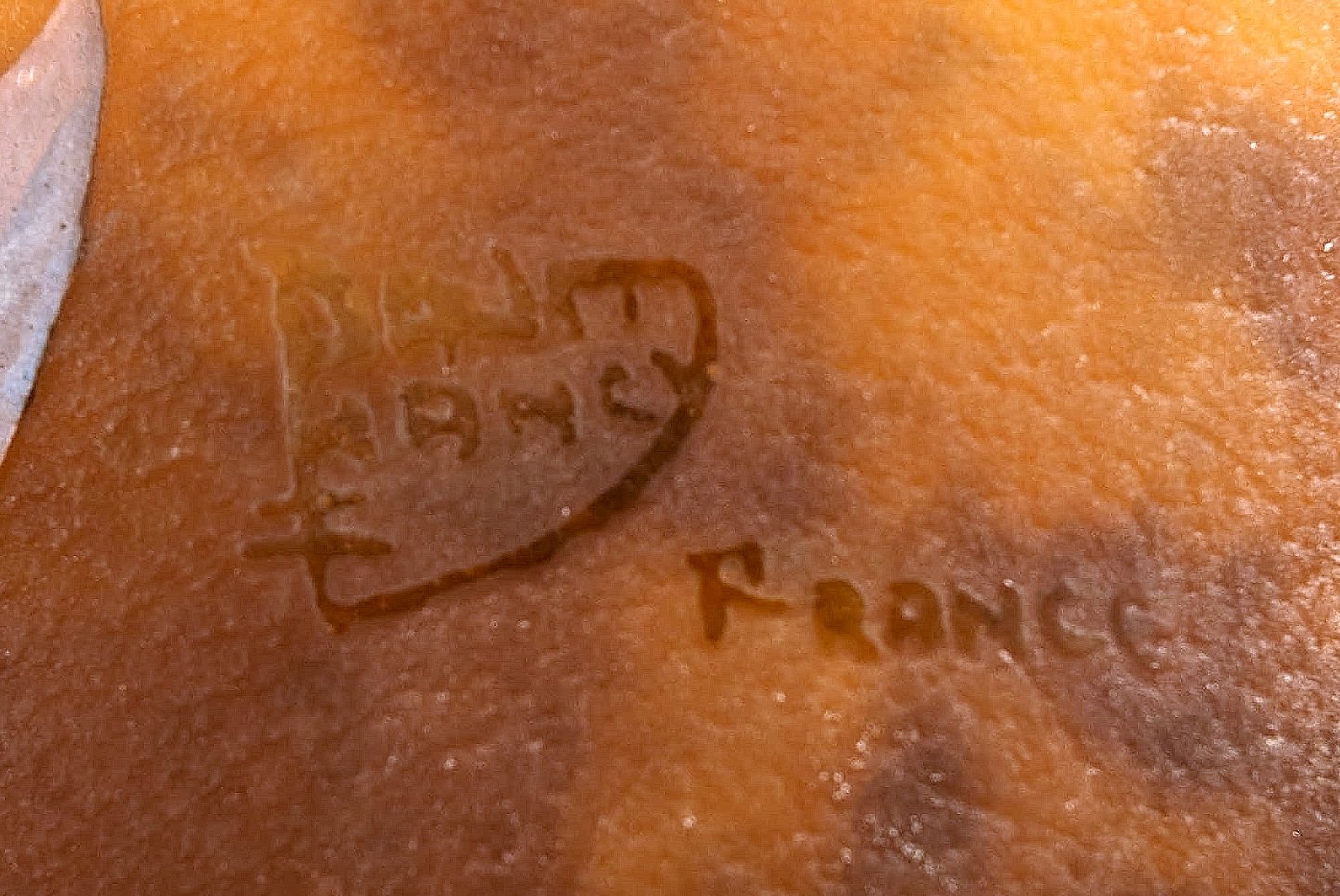 Stor og imponerende Daum Nancy art nouveau vase i mundblæst emalje kunstglas. Syreætset glas. Håndmalede røde blomster og grene i relief. Dateret 1915.