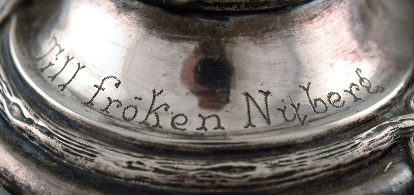 Svensk sølvsmed. Blækhus i sølv med nisse. 1890'erne.