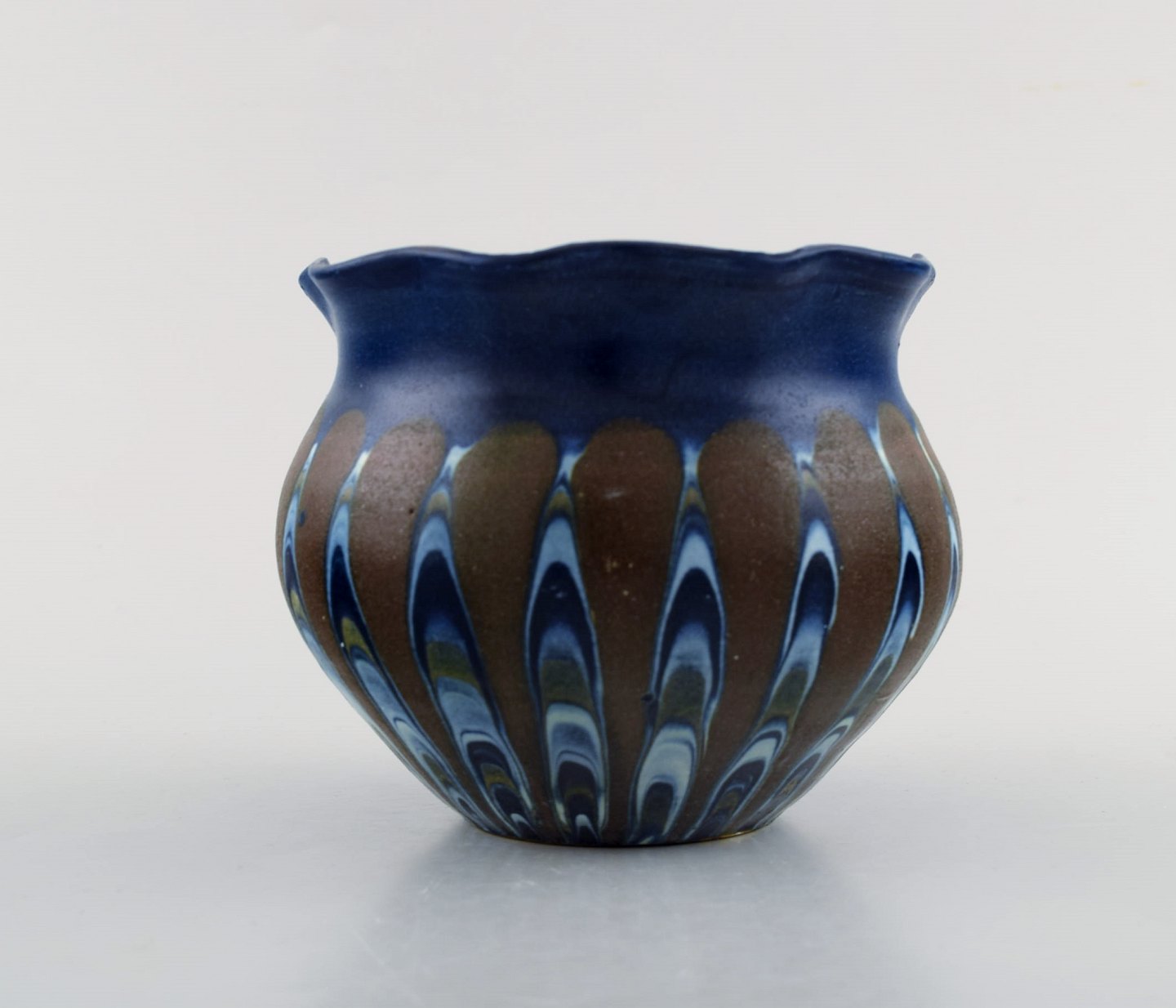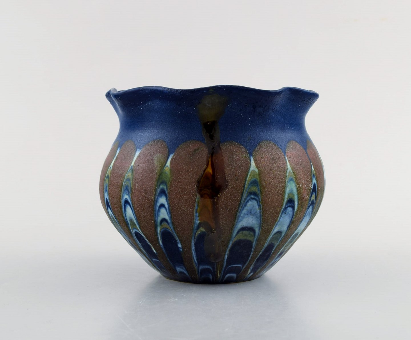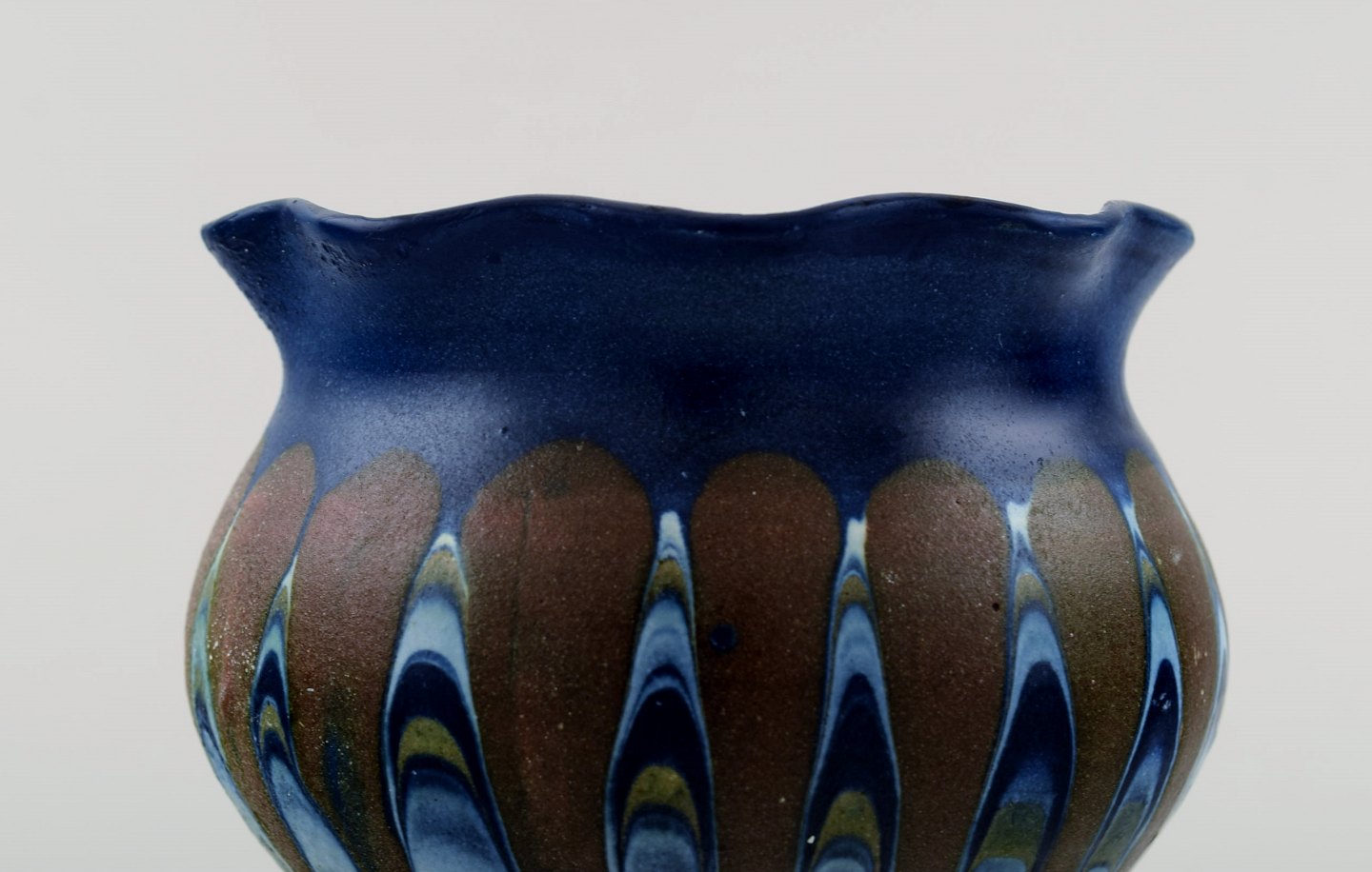 Kähler, HAK. Vase i glaseret keramik. Smuk glasur i brune og blå nuancer. 1930/40'erne.