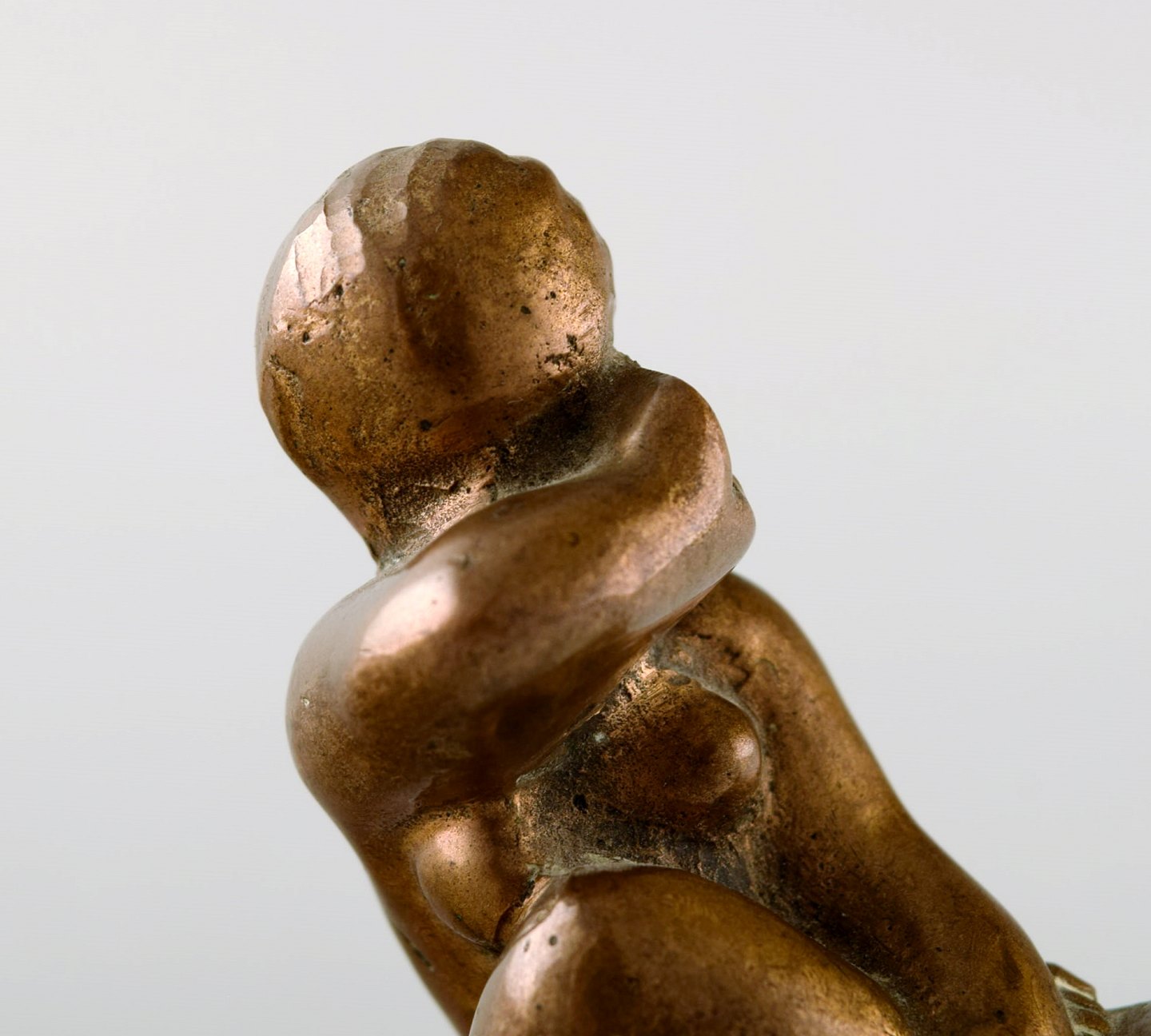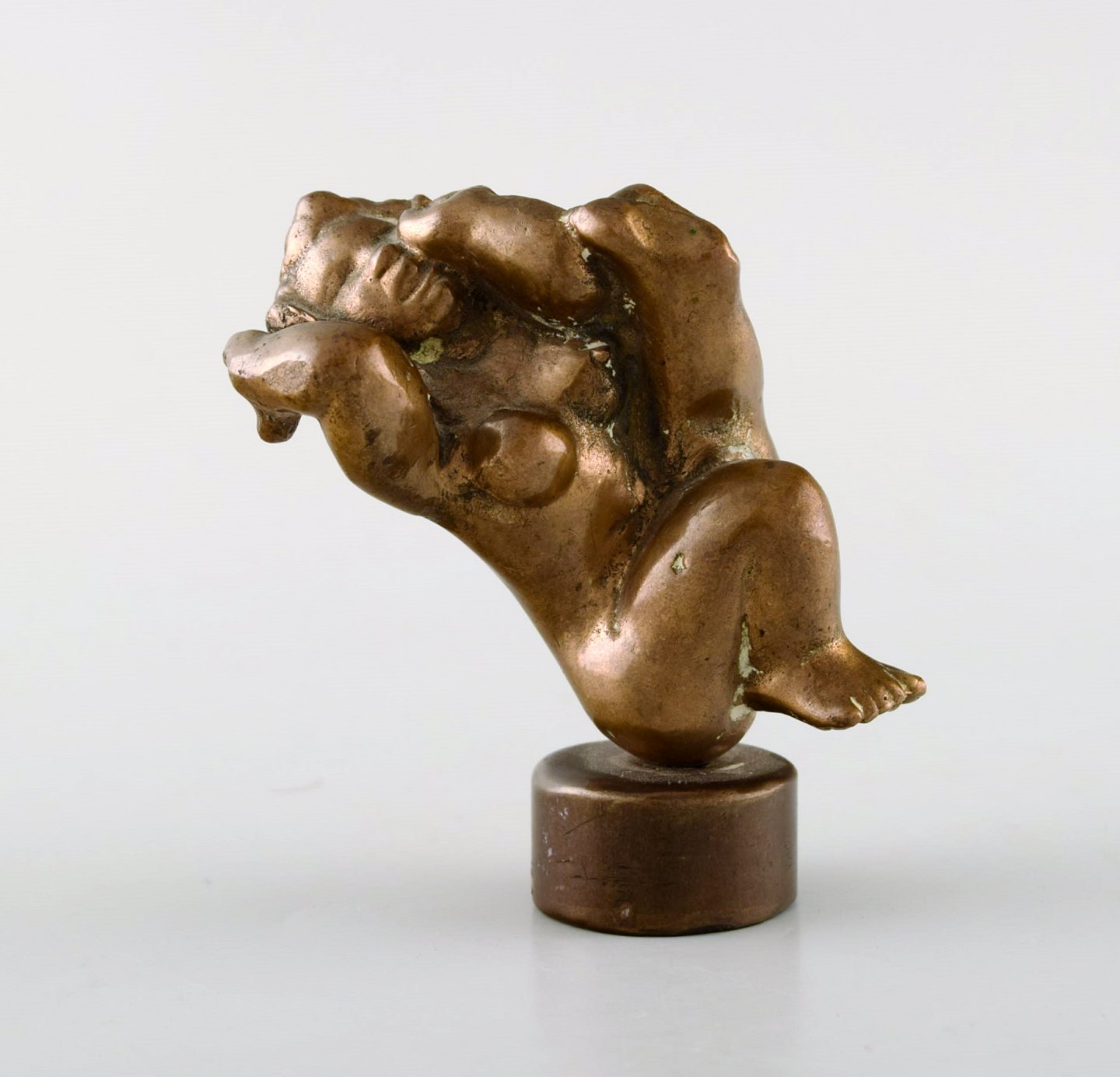 Dansk bronzeskulptør. Et par figurer i patineret bronze. Nøgne kvinder. Midt 1900-tallet. I flot stand. Måler: 7,5 x 7,5 cm. Signeret: AAS
