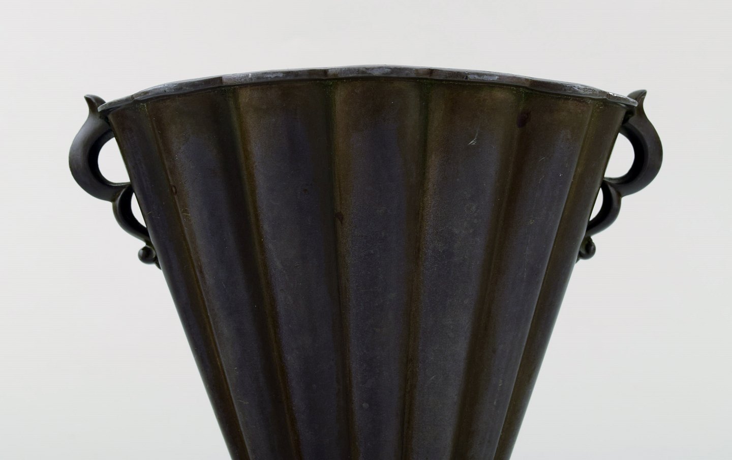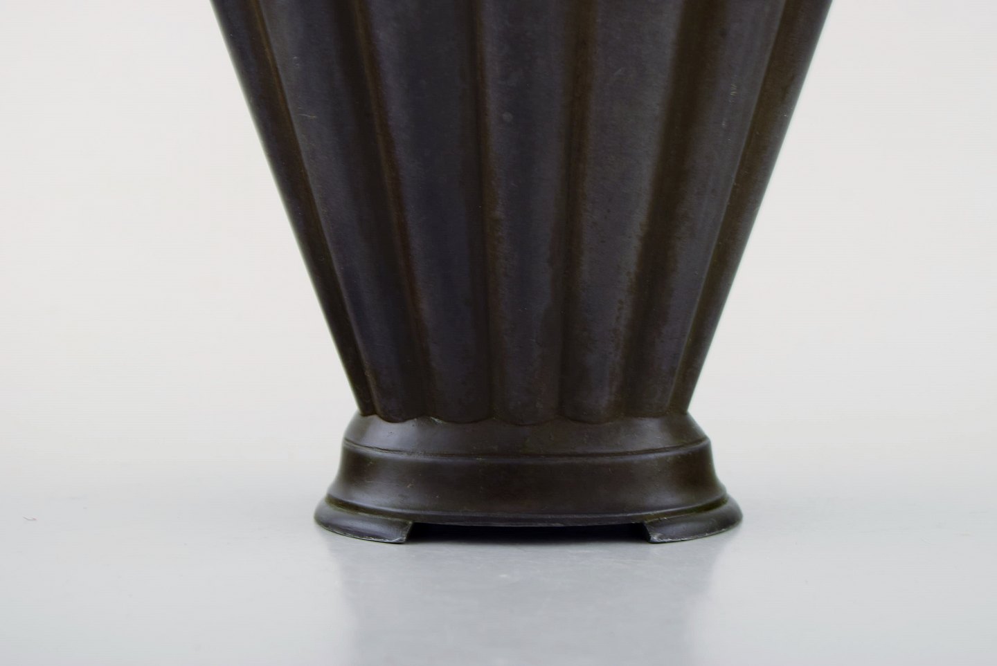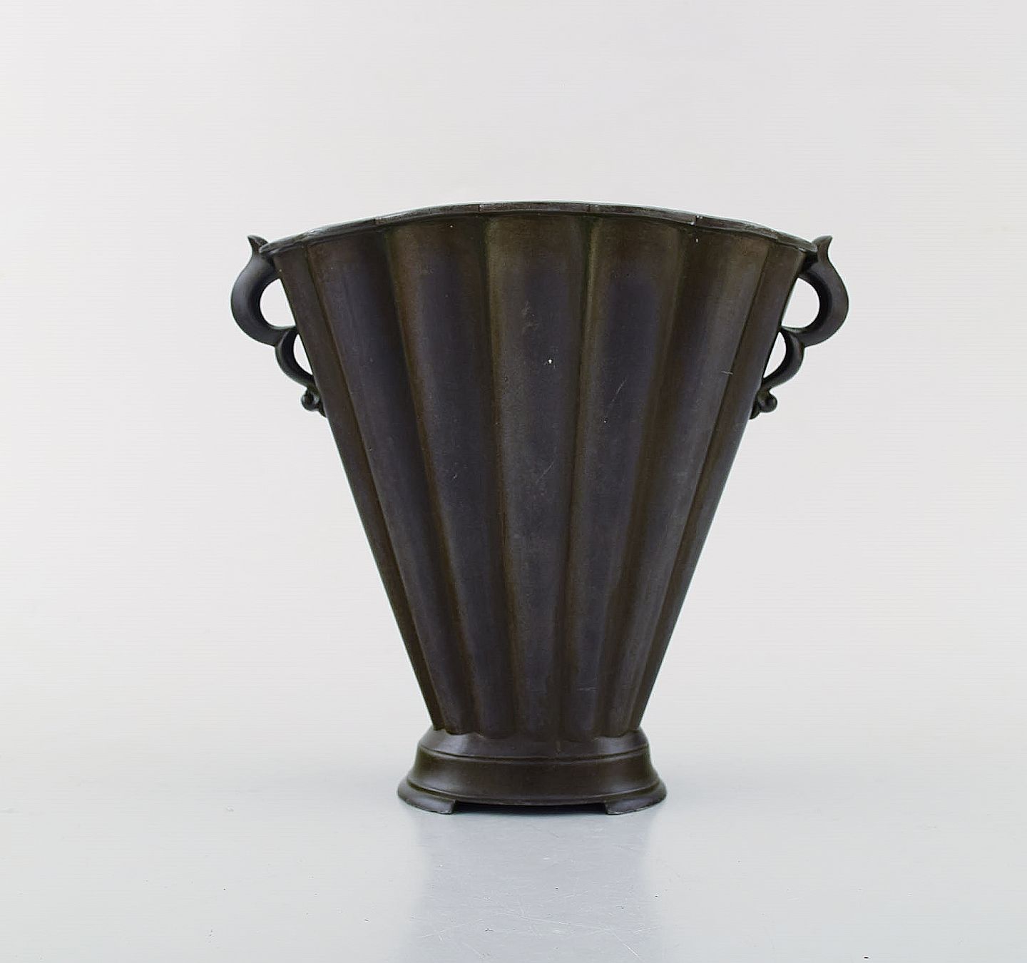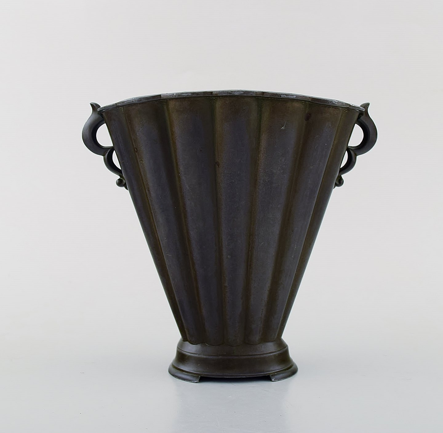 Just Andersen. Art deco vase i diskometal. 1940'erne. Modelnummer D20. I flot stand. Stemplet. Måler: 17,5 x 16 cm.