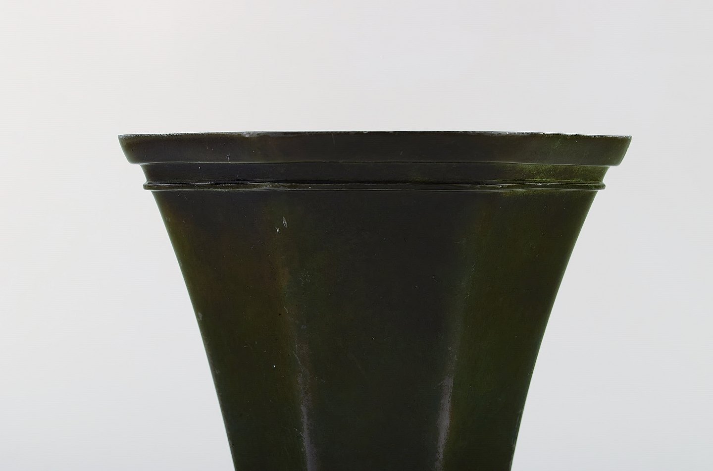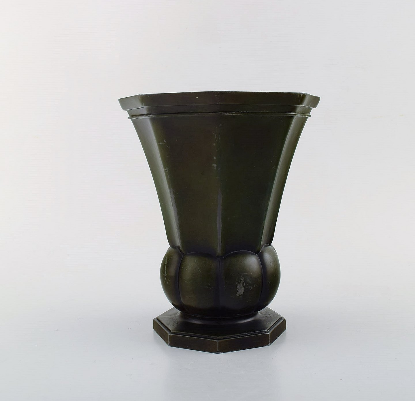 Art Deco Vase, designed by Just Andersen. Denmark 1940s. The vase is made in patinated metal and signed 'Just A'. Number 1932. Measures: 19 x 15 cm. In good condition, normal wear.