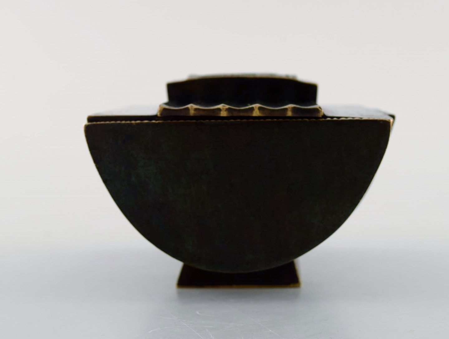 Israelsk art deco lågkrukke i bronze. 1940'erne.