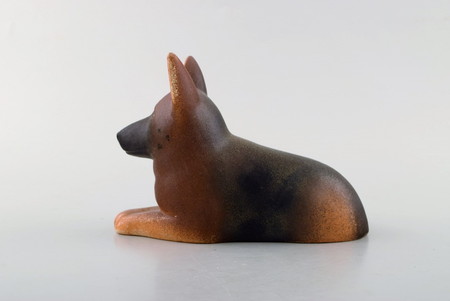 Lisa Larson for Gustavsberg. German shepherd in glazed stoneware. Late 20th century. In very good condition. Stamped. Measures: 17.5 x 17.5 cm.