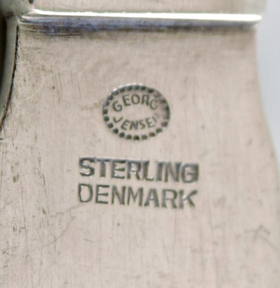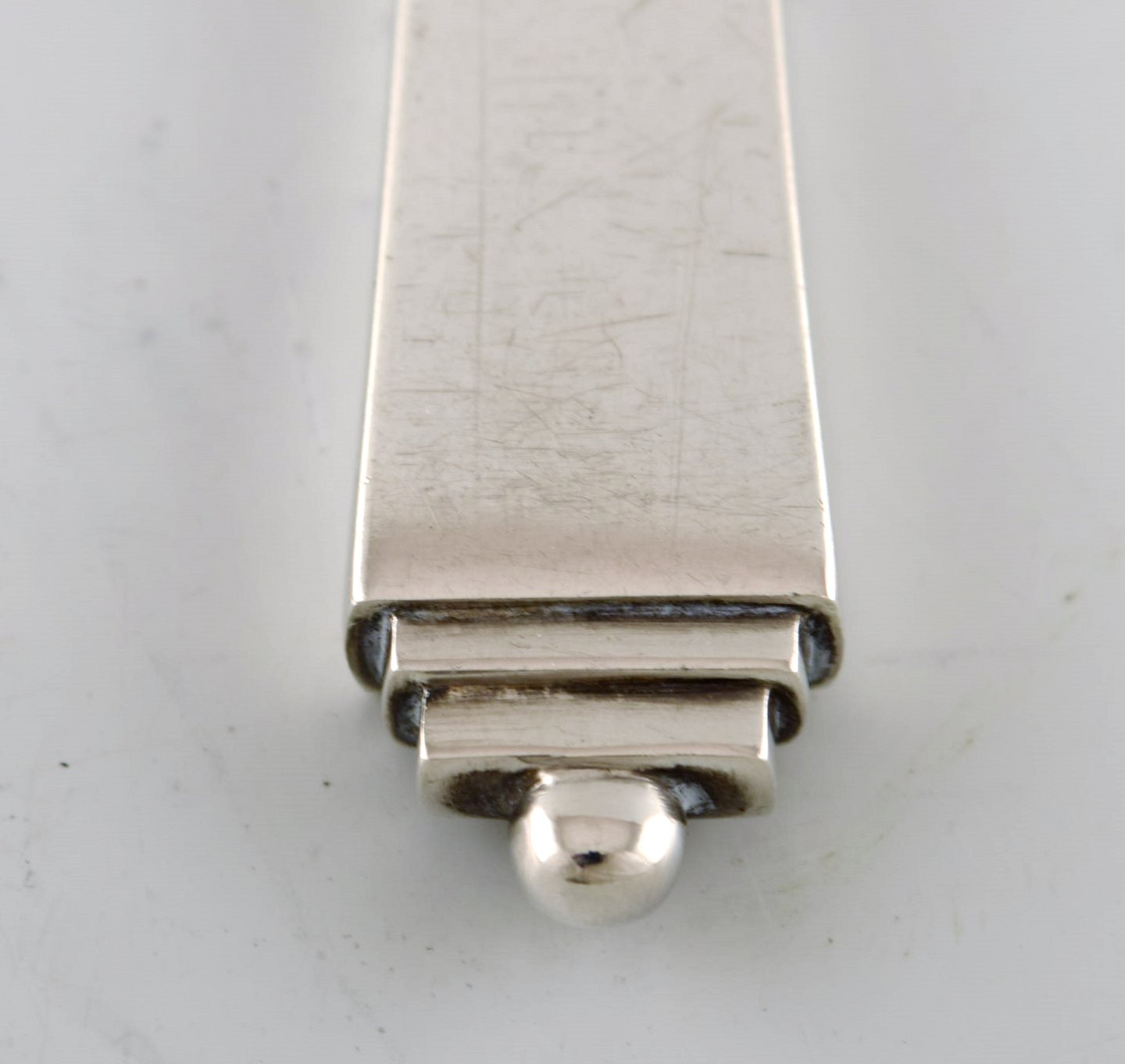 Georg Jensen "Pyramide" smørkniv i helsølv. Designet af Harald Nielsen 1927. I flot stand. Måler: 14,5 cm. Stemplet.
