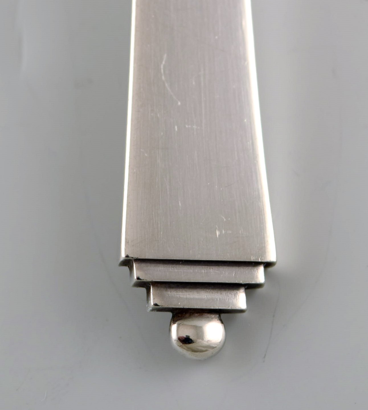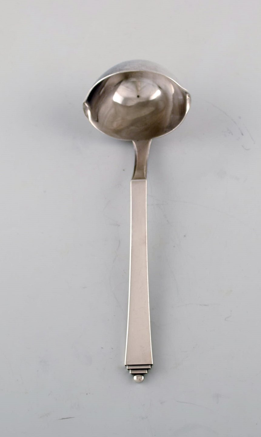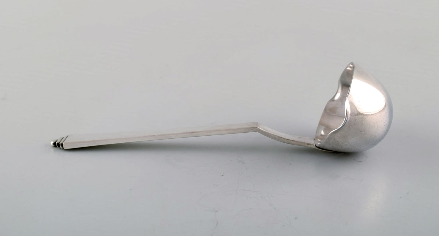 Georg Jensen "Pyramid" sauce spoon in all silver. Designed by Harald Nielsen 1927. In very good condition. Measures: 19 cm. Stamped.