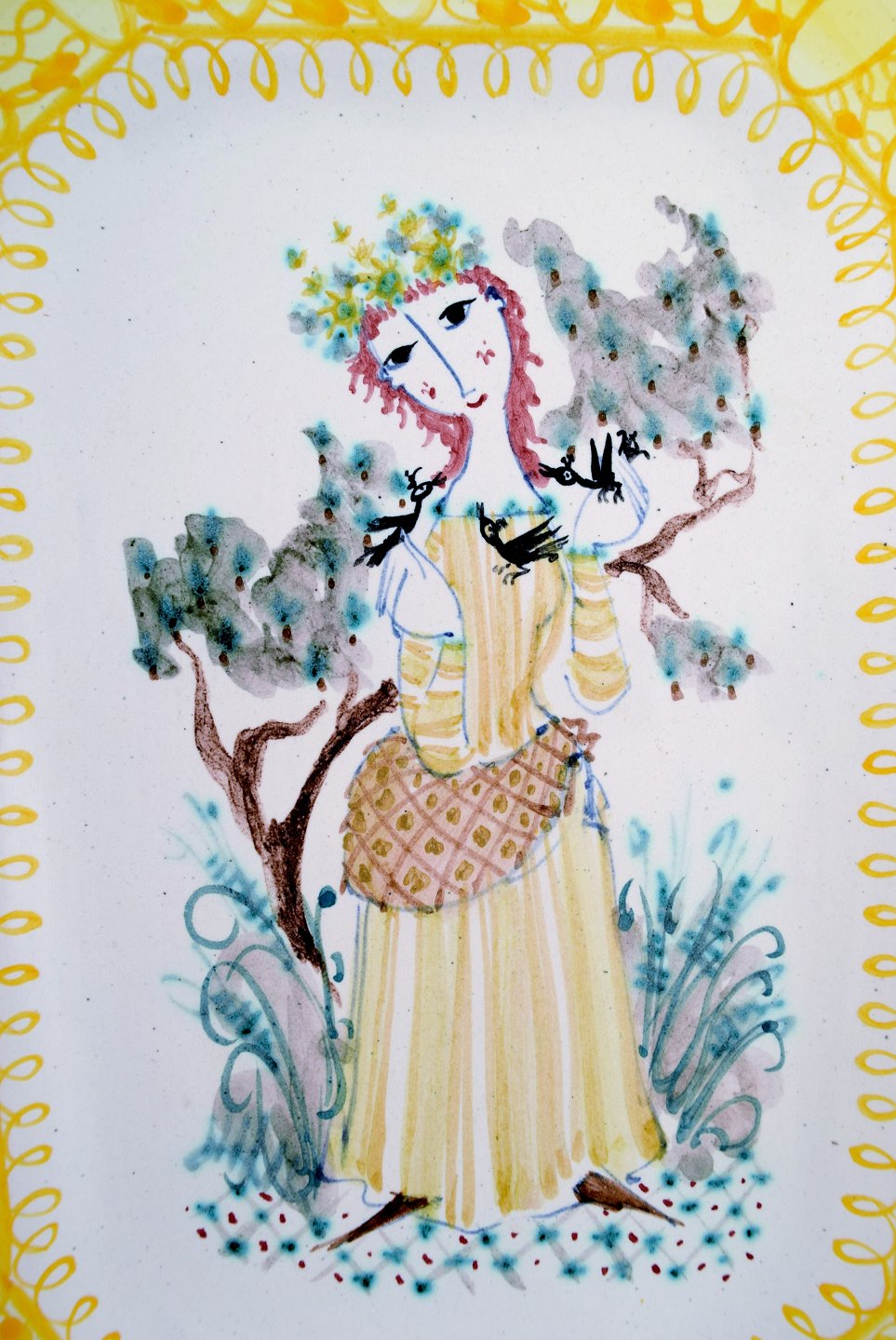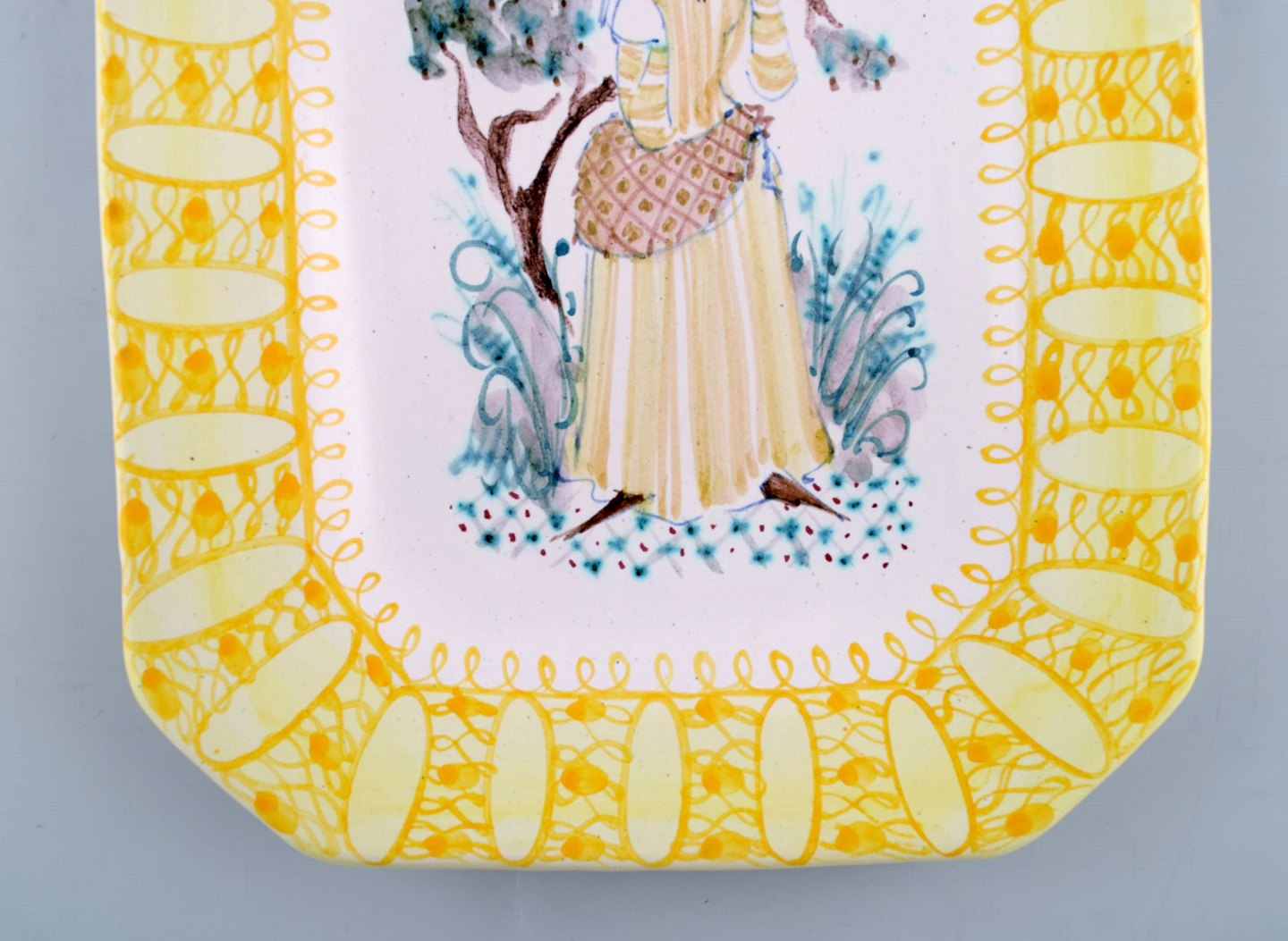 Bjørn Wiinblad. Sjældent og tidligt fad i glaseret keramik med kvindemotiv. Dateret 1949.