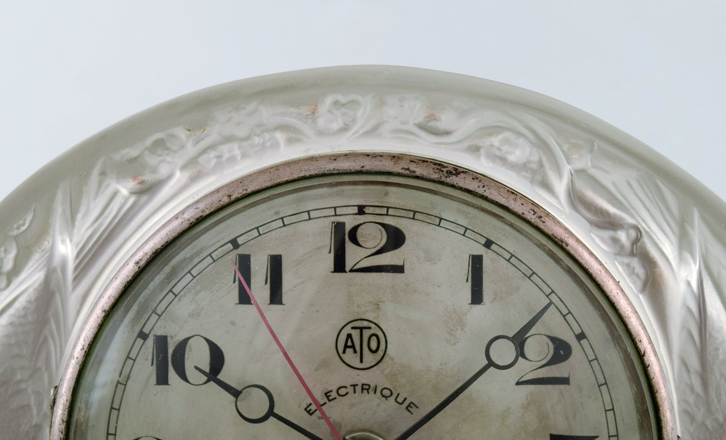 Tidligt René Lalique "Moineaux" bordur i frosset kunstglas dekoreret med spurve, blade og kviste. Ca. 1924.