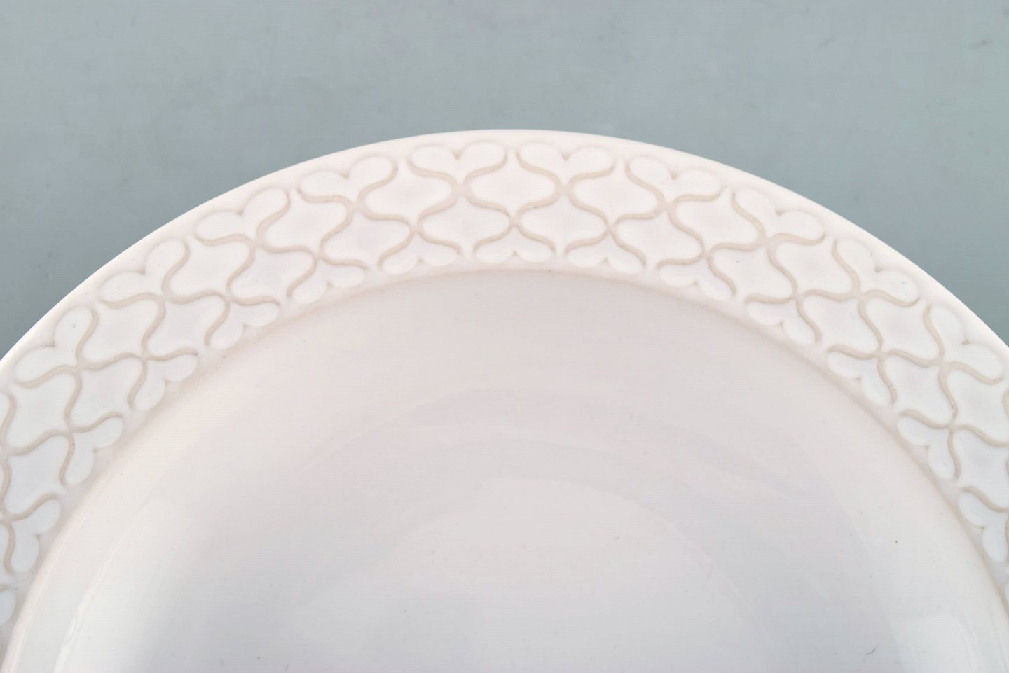 Jens H. Quistgaard for Bing & Grondahl. White "Cordial Palet" soup / pasta plate in glazed stoneware. 1960's. 19 pieces in stock. Stamped. In very good condition. 1st factory quality. Measures: 21.5 x 3 cm.
