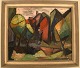 Sonja Ivarsson, svensk maler. Olie på lærred. Kubistisk landskab. I flot stand. Signeret. Lærredet måler: 44 x 36 cm. Rammen måler: 3,5 cm.