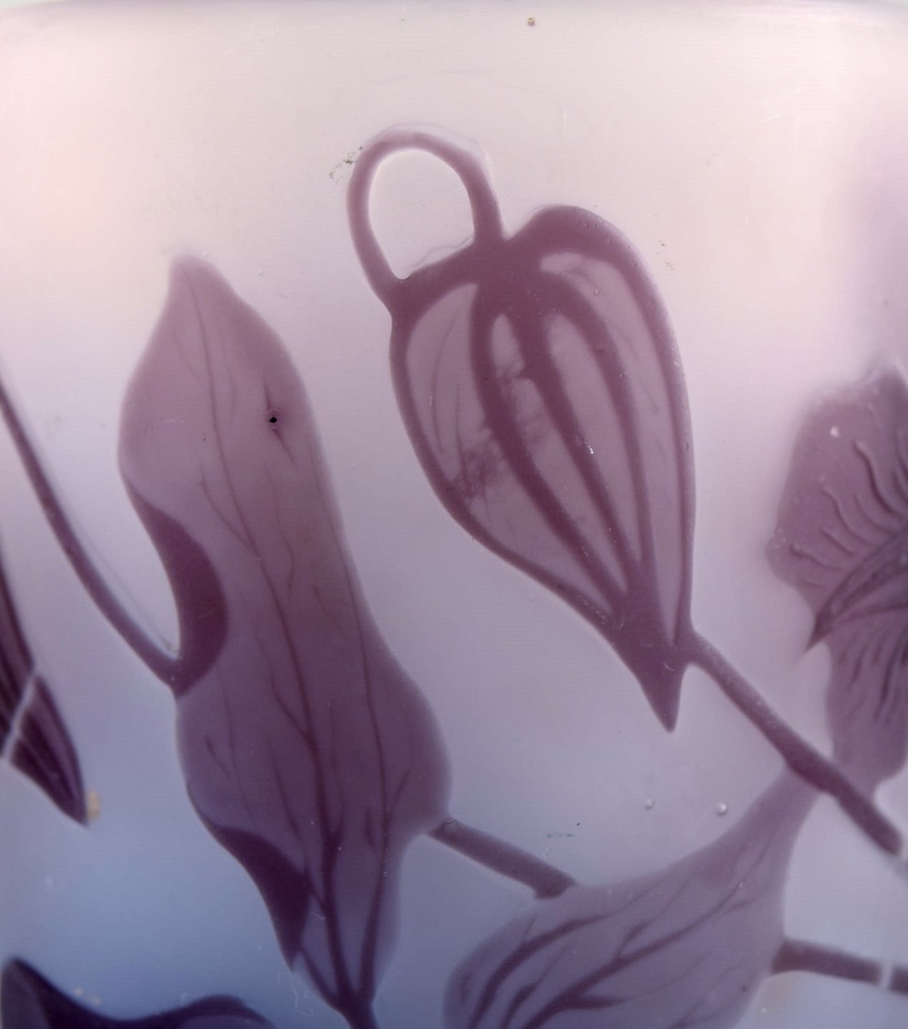 Emile Gallé kunstglasvase dekoreret med lilla blomster. Ca. 1910. Mċler: 6 x 5,5 cm. Signeret. I perfekt stand.
