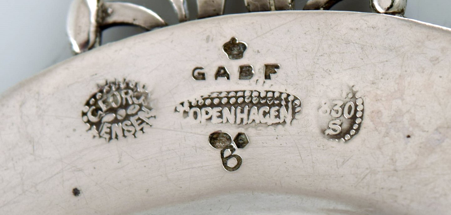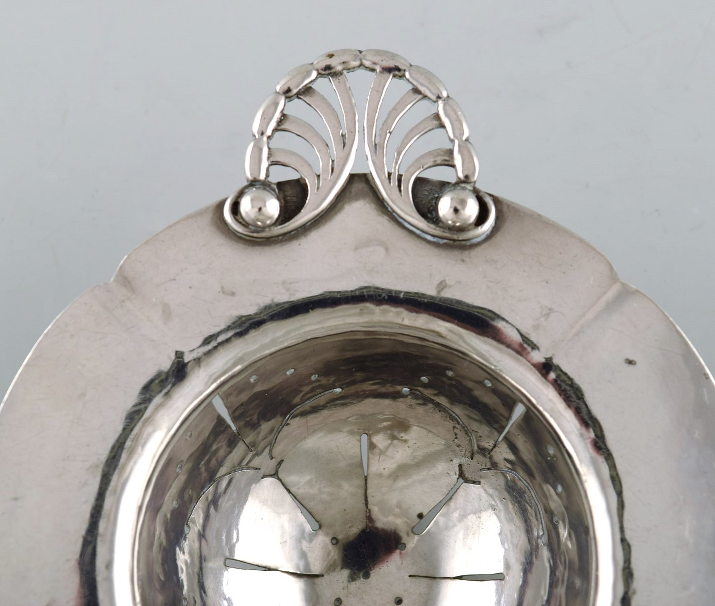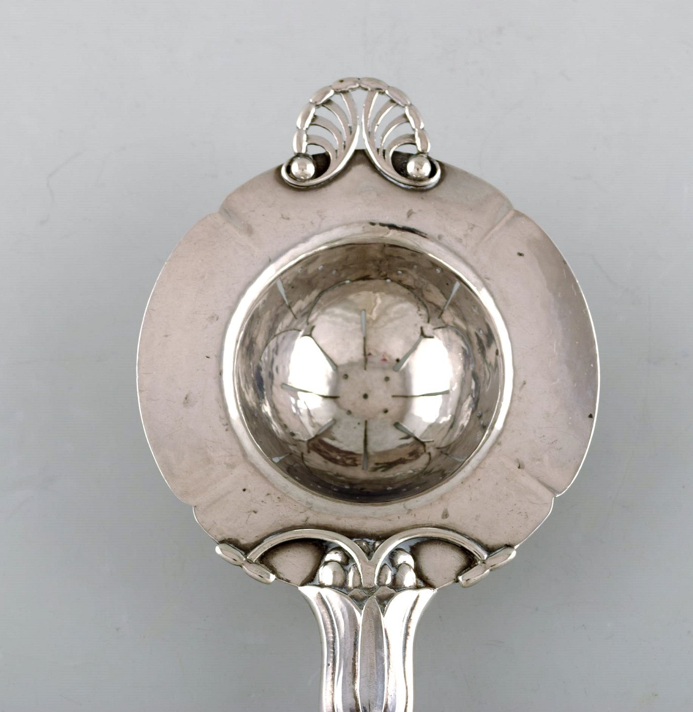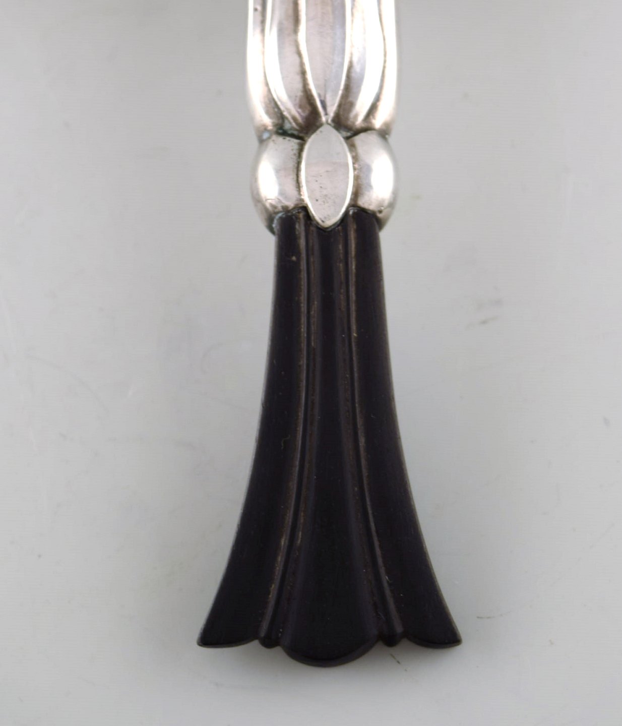 Tidlig og sjælden art nouveau Georg Jensen tesi i sølv med håndtag af ibenholt. Dateret 1915-30. Stemplet. Svenske importstempler. I flot stand. Måler: 18,5 cm.