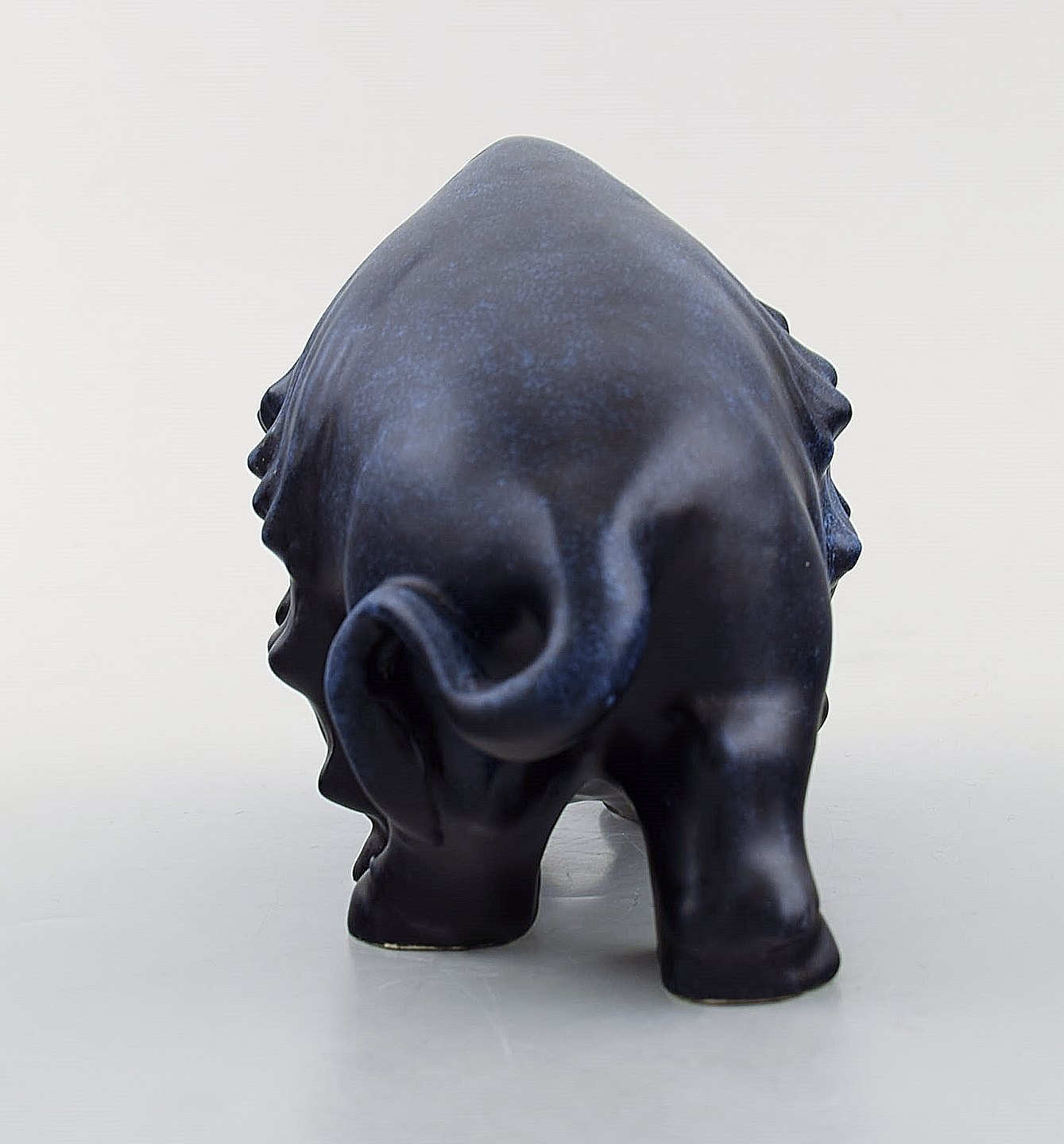 FEJ (Folke og Elsa Jernberg), Sverige. Tyr i glaseret keramik. Smuk glasur i sorte og blå nuancer. 1960/70'erne. Måler: 18 x 11 cm. I flot stand. Stemplet.