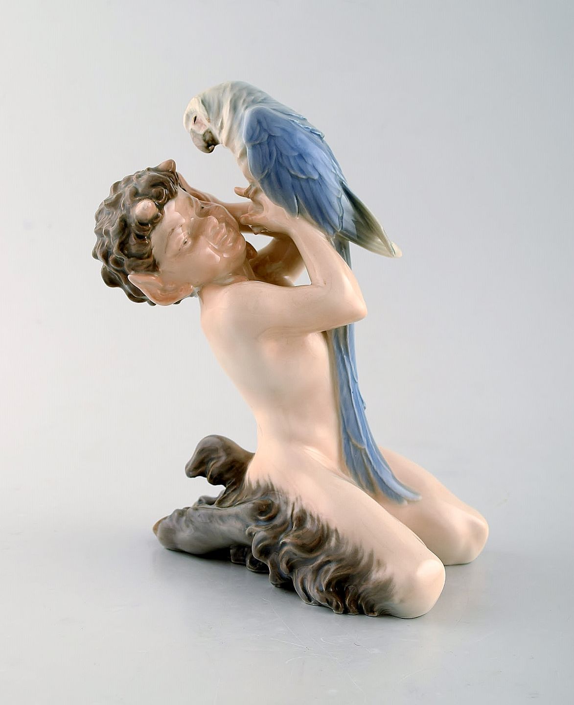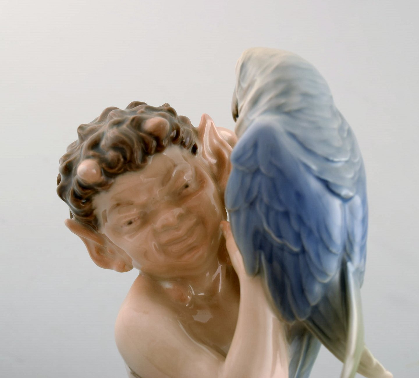 Royal Copenhagen porcelænsfigur. Faun med papegøje. Modelnummer: 752. Måler: 19 x 12 cm. I flot stand. Stemplet. 1. Sortering.