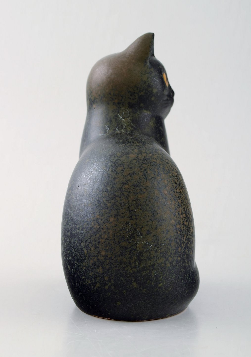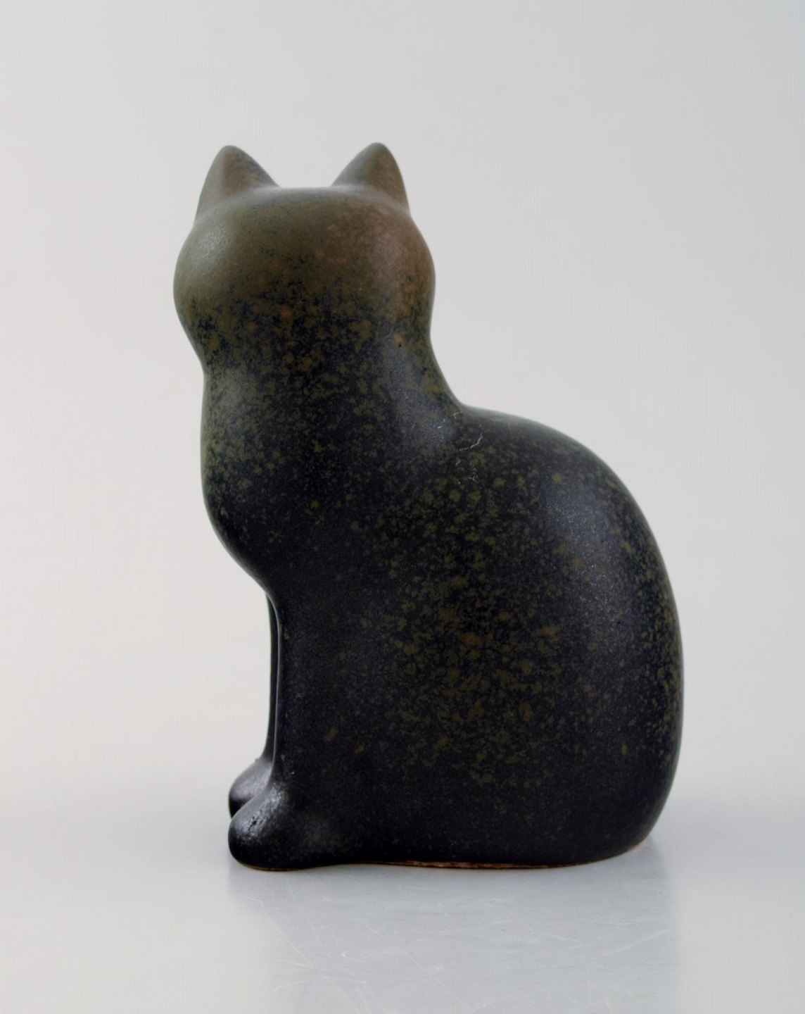 Lisa Larson for K-Studion/Gustavsberg. Kat i glaseret keramik. Sent 1900-tallet. Måler: 14,5 x 10 cm. I flot stand. Stemplet.