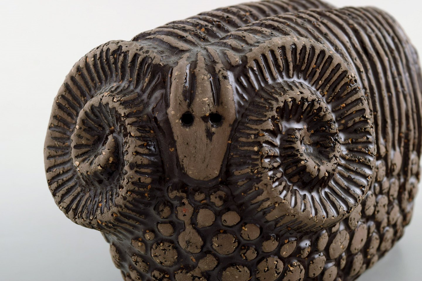 Paula von Freymann for Upsala-Ekeby. Vædder i glaseret stentøj. 1960'erne.