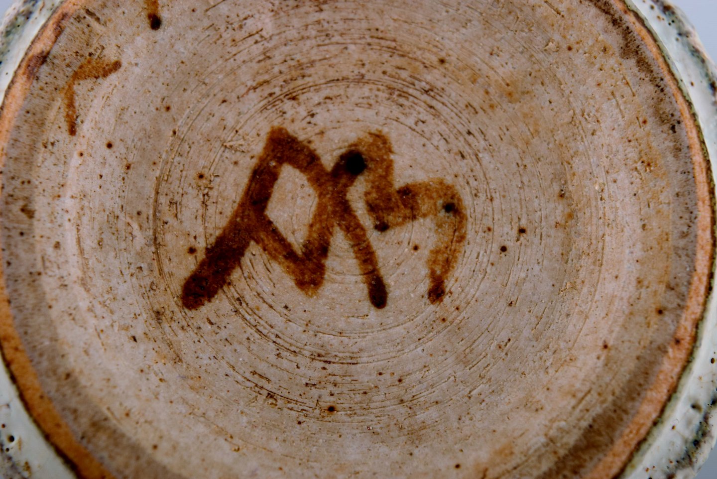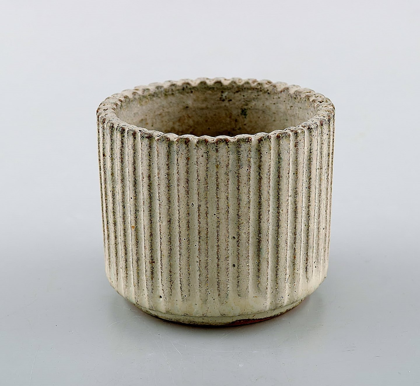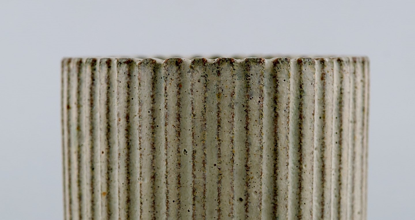 Arne Bang. Art deco kanneleret vase i glaseret keramik. Smuk glasur i sand nuancer. 1930'erne. Signeret i monogram. Måler: 7,5 x 6 cm. I flot stand.