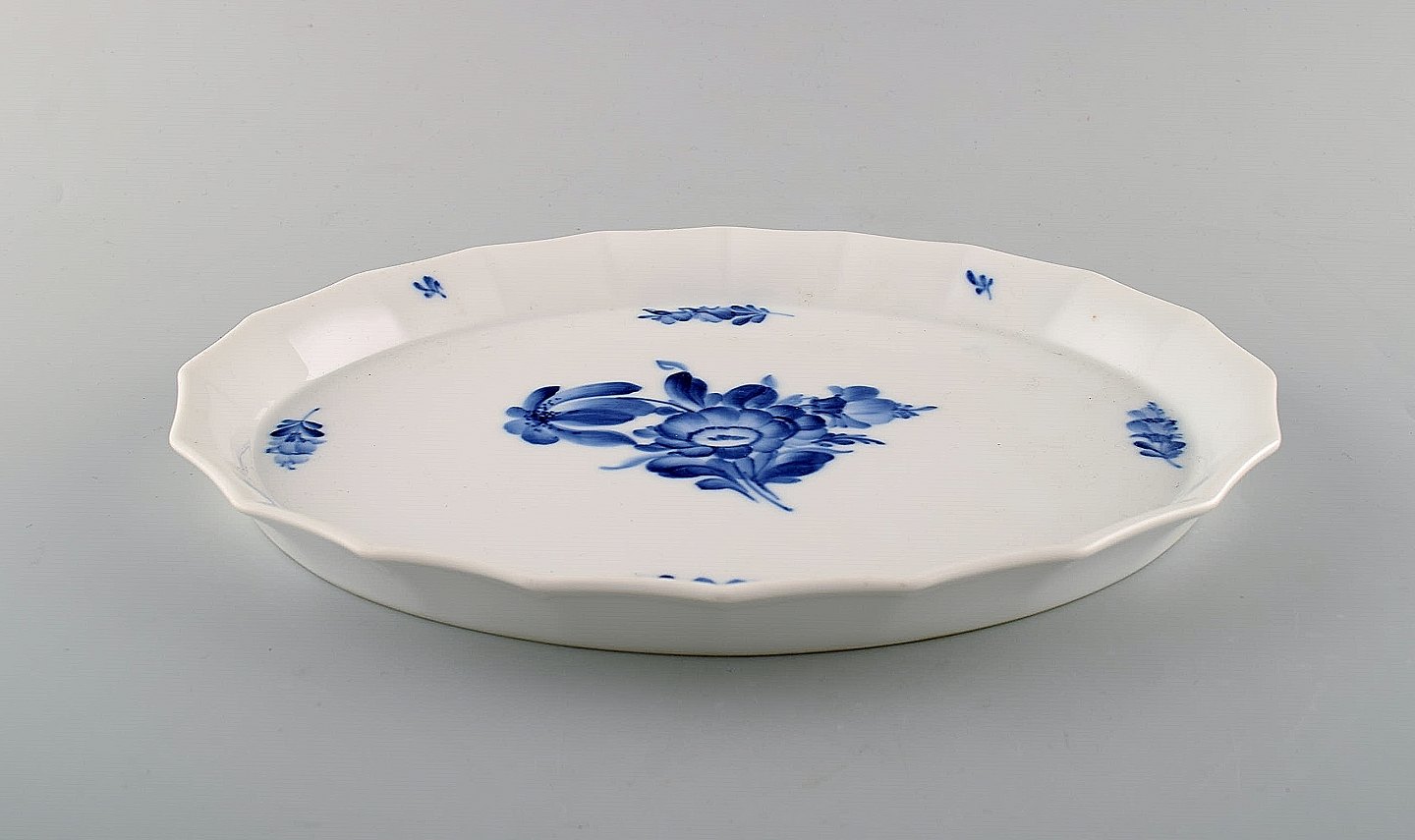 Royal Copenhagen. Blå blomst kantet fad. Dekorationsnummer 10/8578. 2. sortering. I perfekt stand. Måler: 29,5 x 21,5 cm.