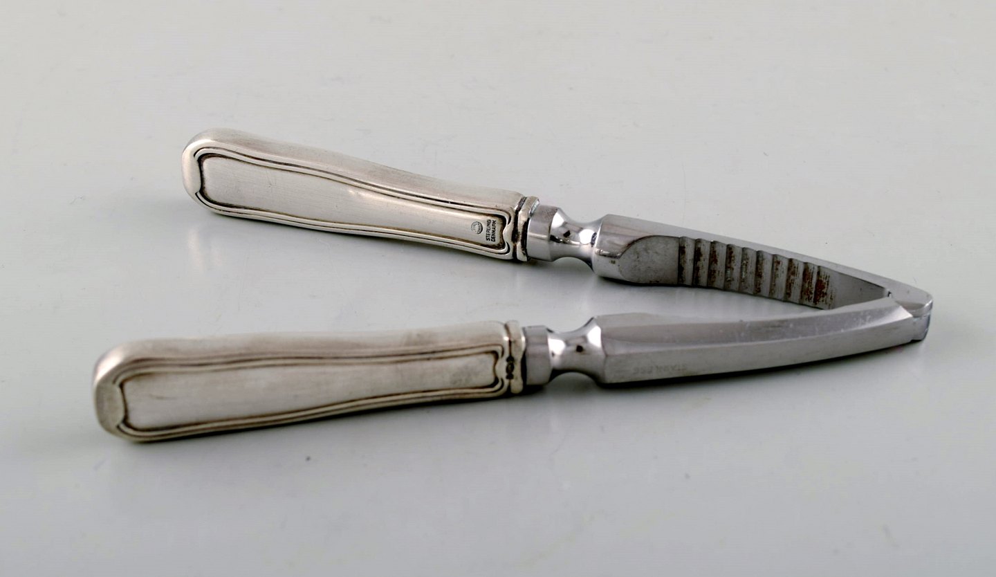 Sjælden Georg Jensen Dobbeltriflet nøddeknækker i sterlingsølv og rustfrit stål.