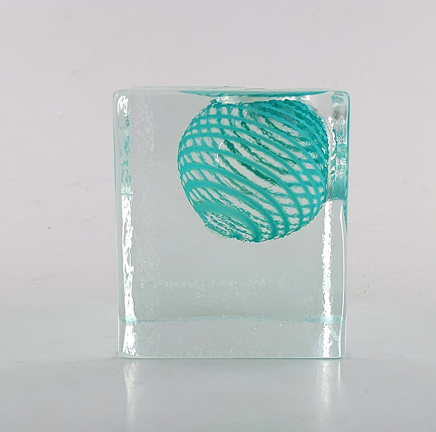 A&A, Alcopa Project. Modernistisk glasblok / brevpresse i klart og turkis kunstglas. Sent 1900-tallet.