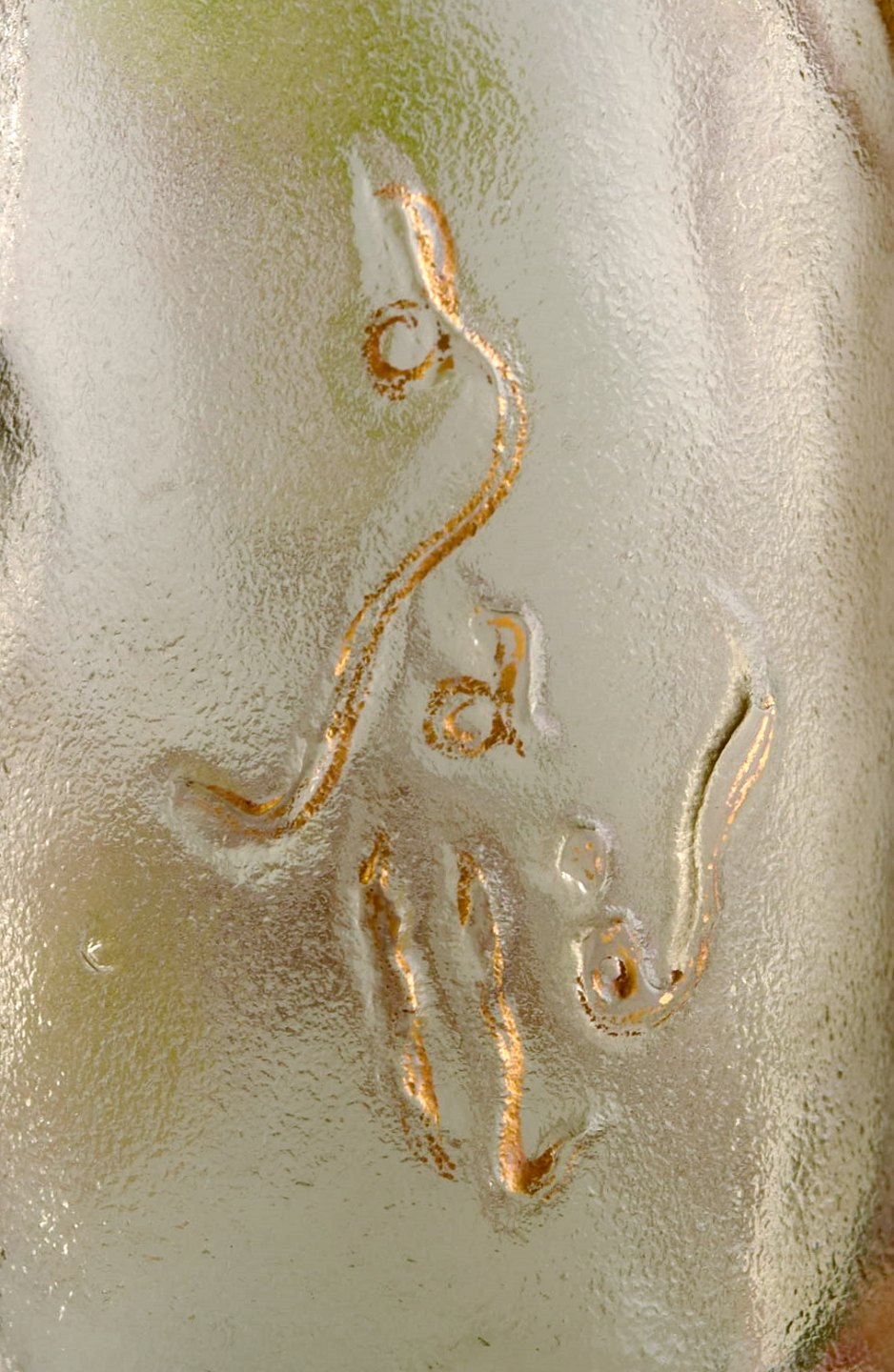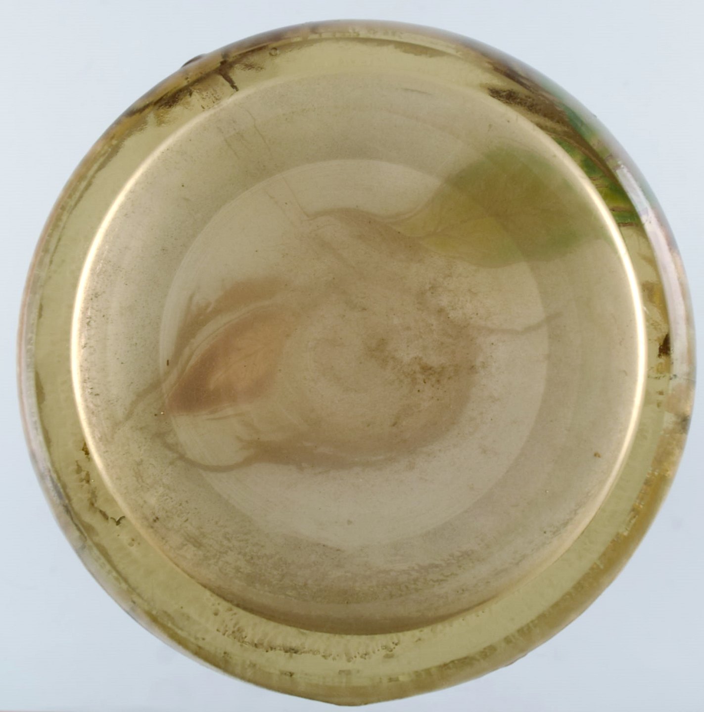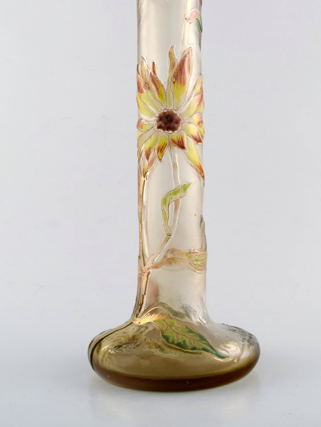 Tidlig Emile Gallé japanisme vase i klart matteret kunstglas. Overfang udskåret med motiver i form af blomster og blade gult og rødt kunstglas. 1890'erne.