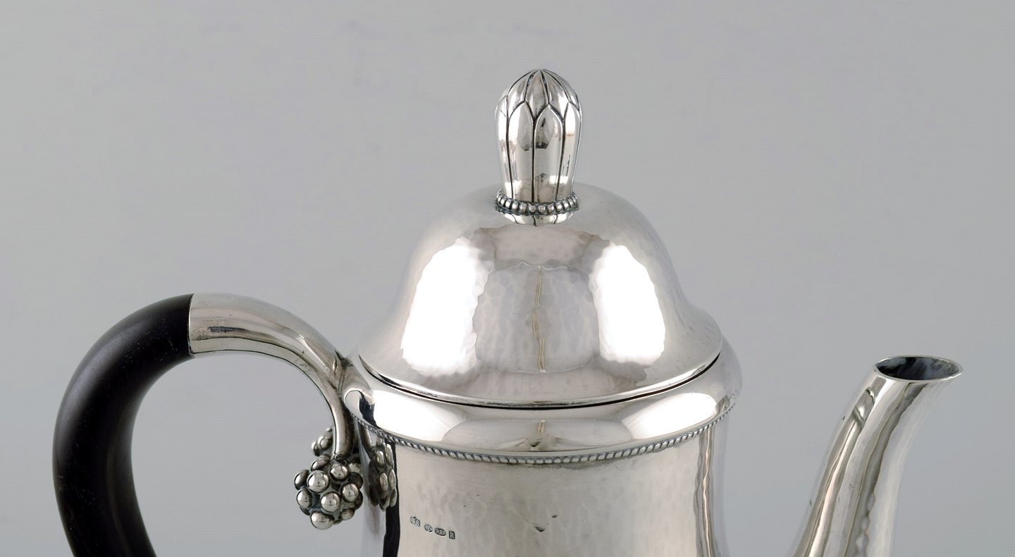 Tidlig og sjælden Georg Jensen kaffekande. Dessin nummer: 32C. Dateret: 1915-30. I flot stand. Stemplet. Måler: 24,5 x 20 cm.