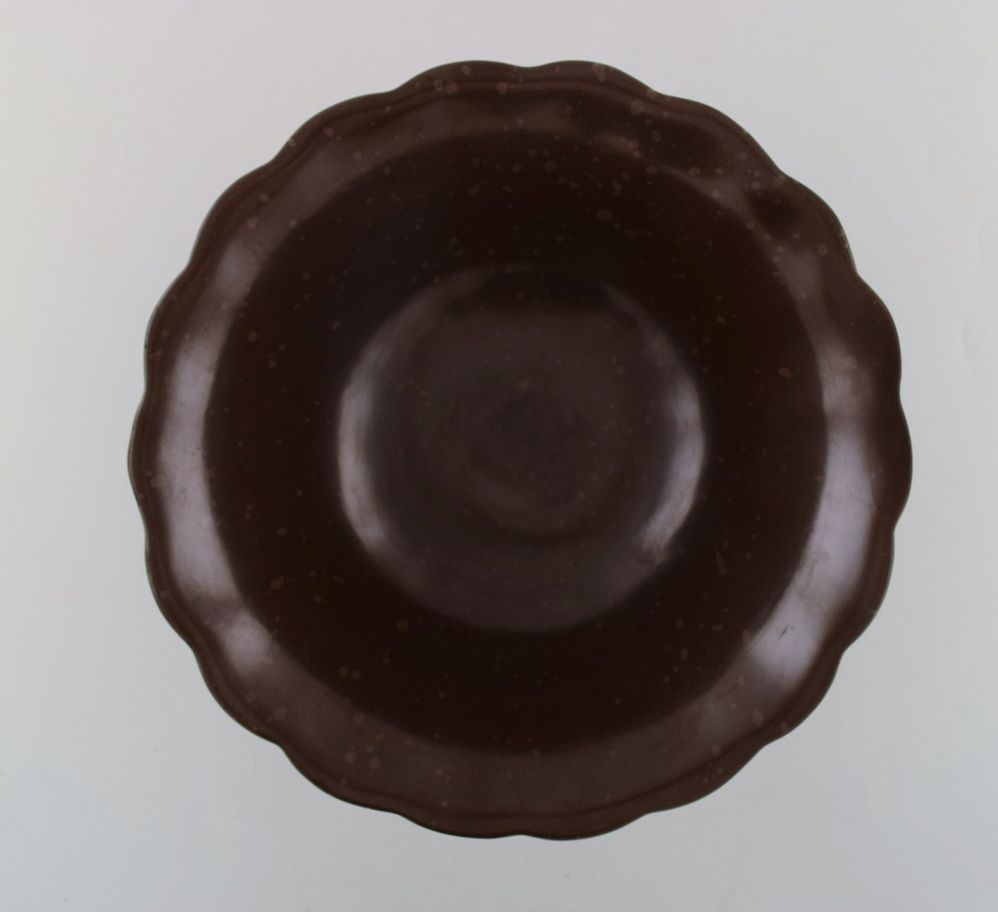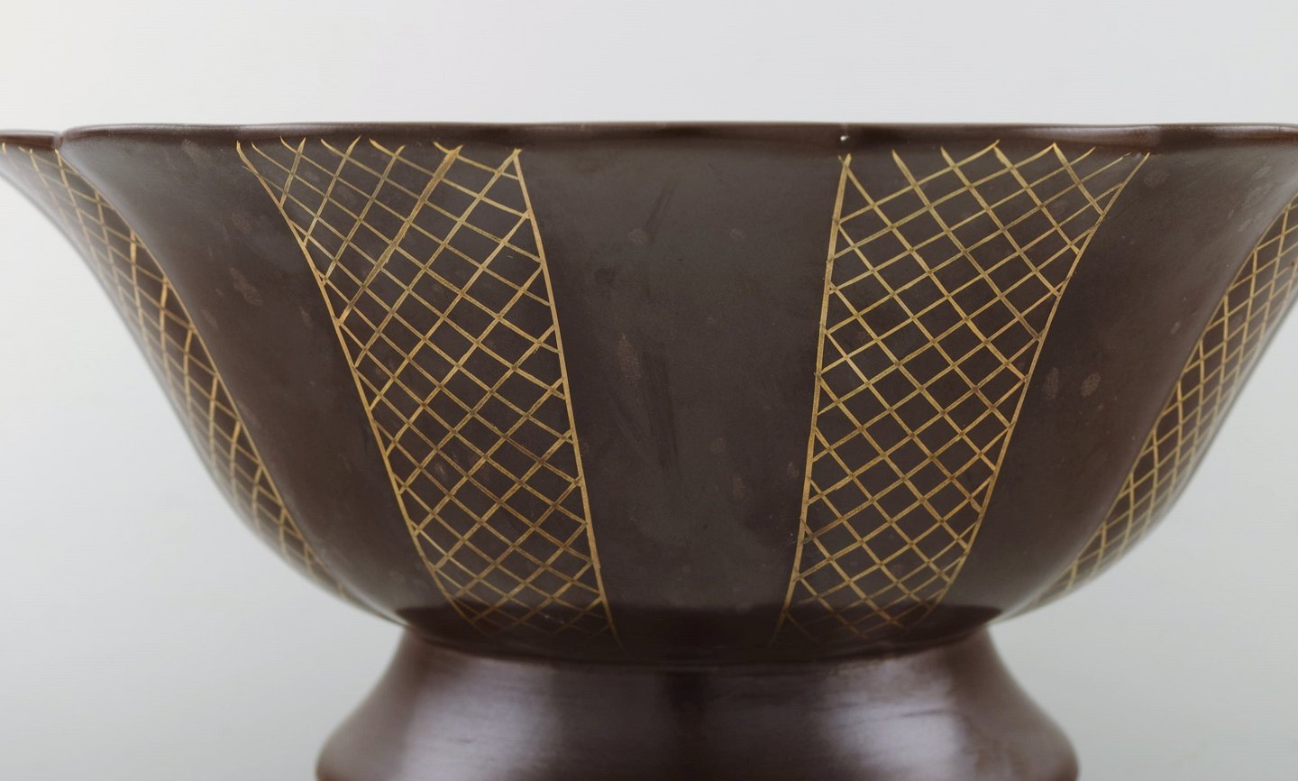 Wilhelm Kåge for Gustavsberg. Stor "Goldoni" vase i glaseret keramik. Smuk glasur i brune nuancer med gulddekoration. 1950'erne.
