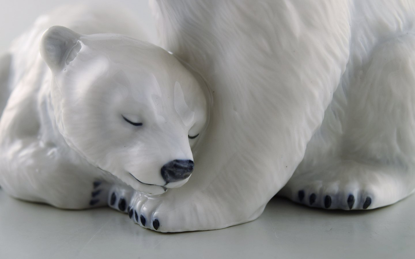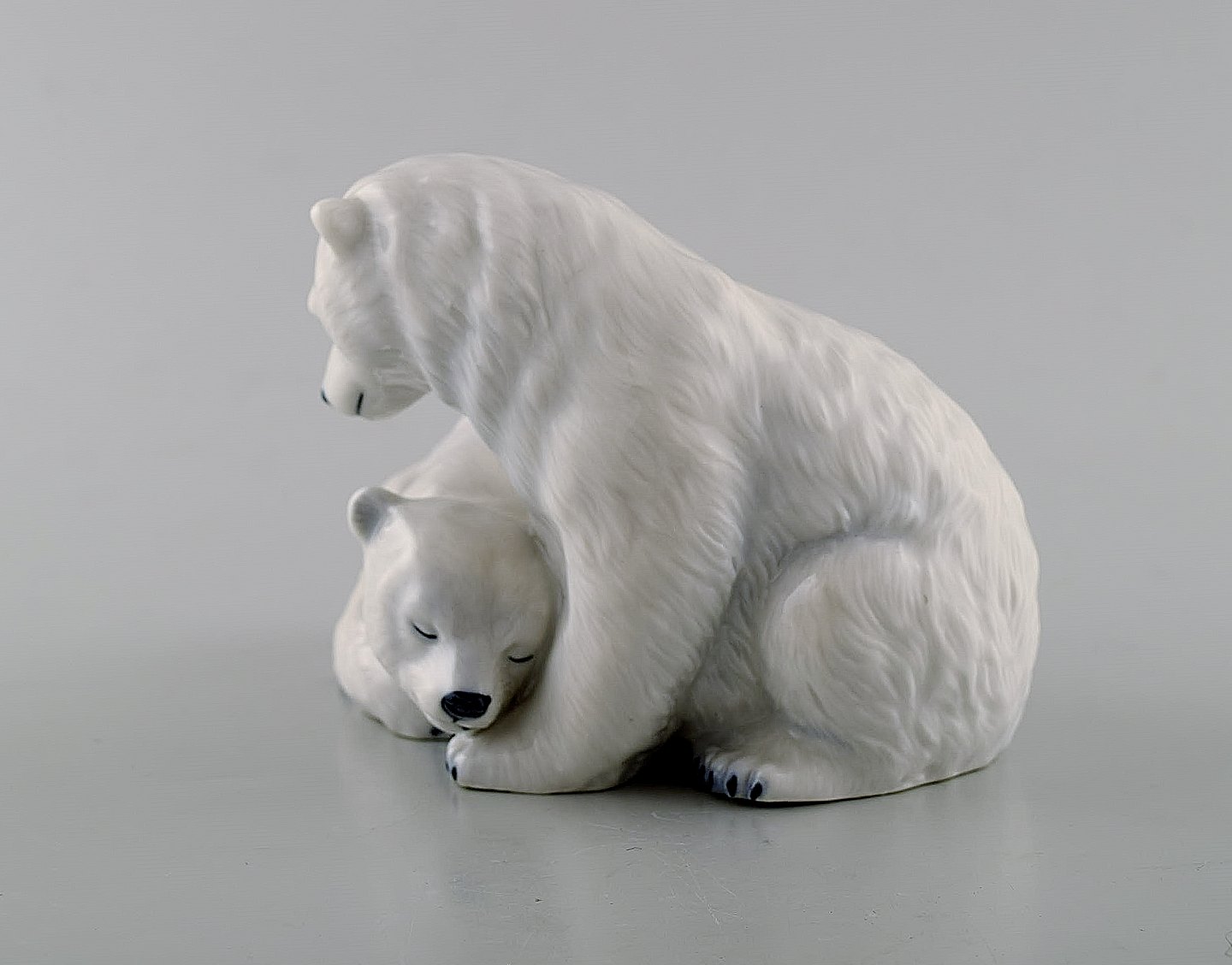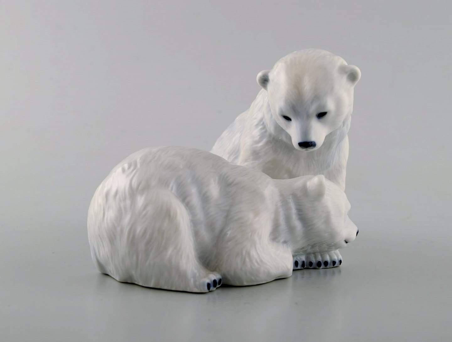 Allan Therkelsen for Royal Copenhagen. Sjælden porcelænsfigur model 356. To isbjørneunger.