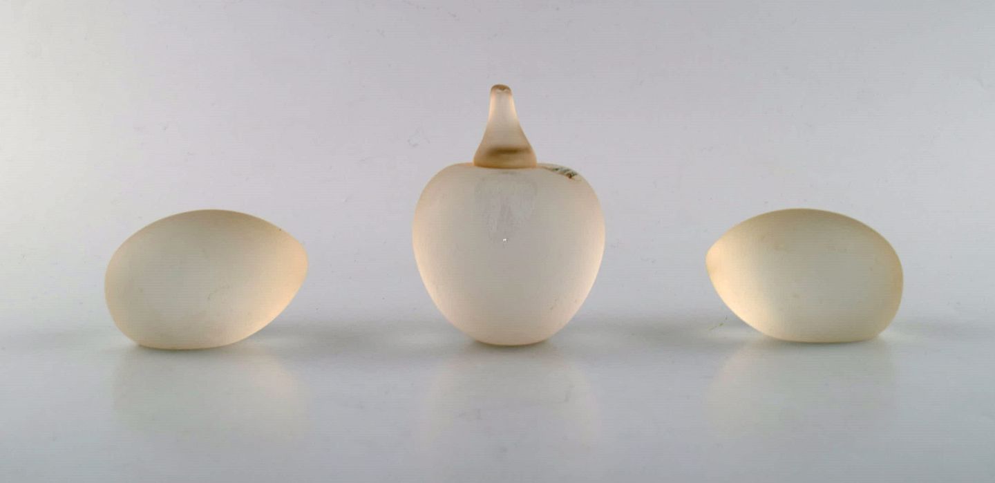 Råman Design. Tre figurer i sløret kunstglas. Sent 1900-tallet. Største måler: 8,5 x 6,5 cm. I flot stand. Mærkat.