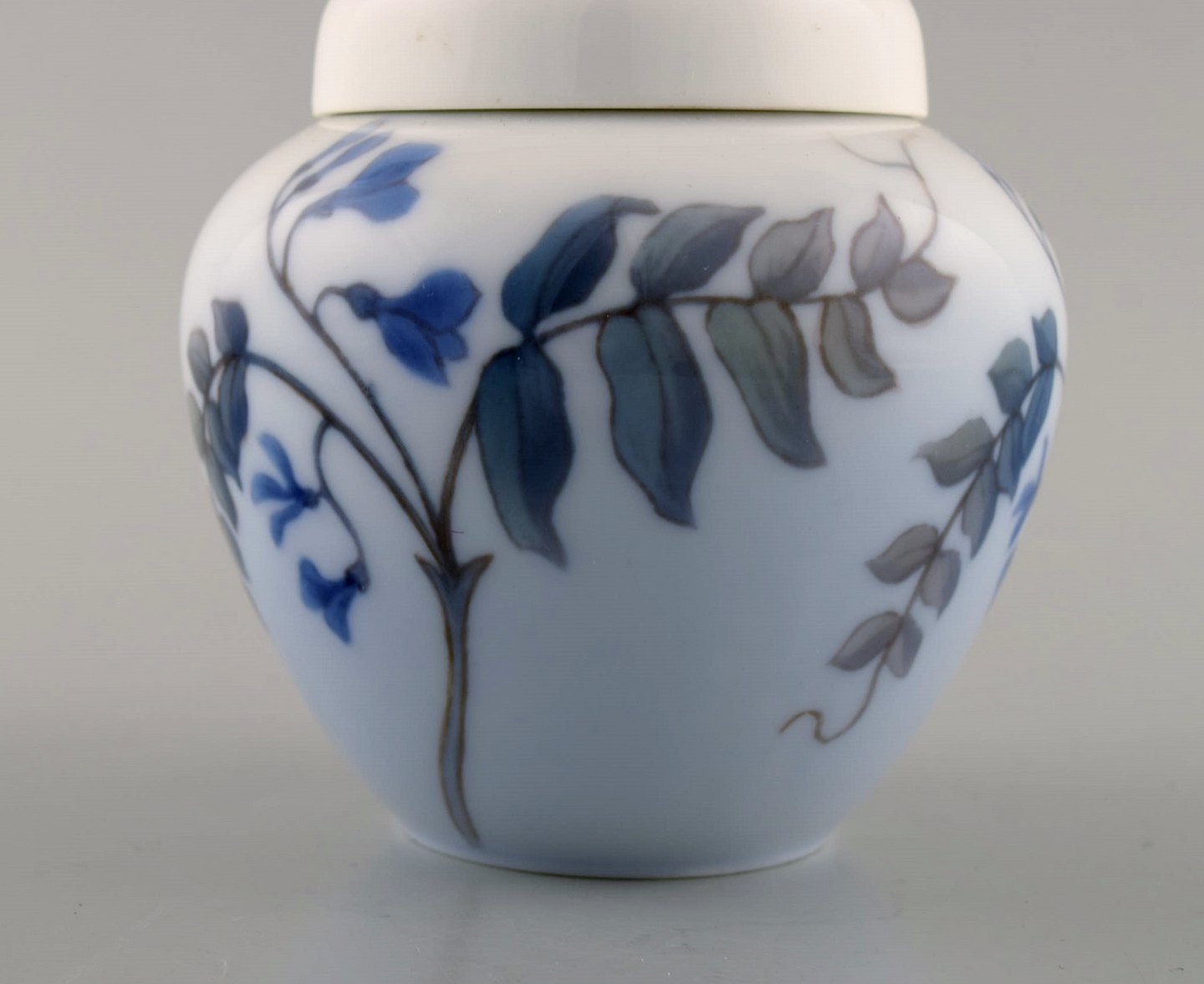 Royal Copenhagen. Lågkrukke i porcelæn med græshoppe og blomster. Ca. 1920.