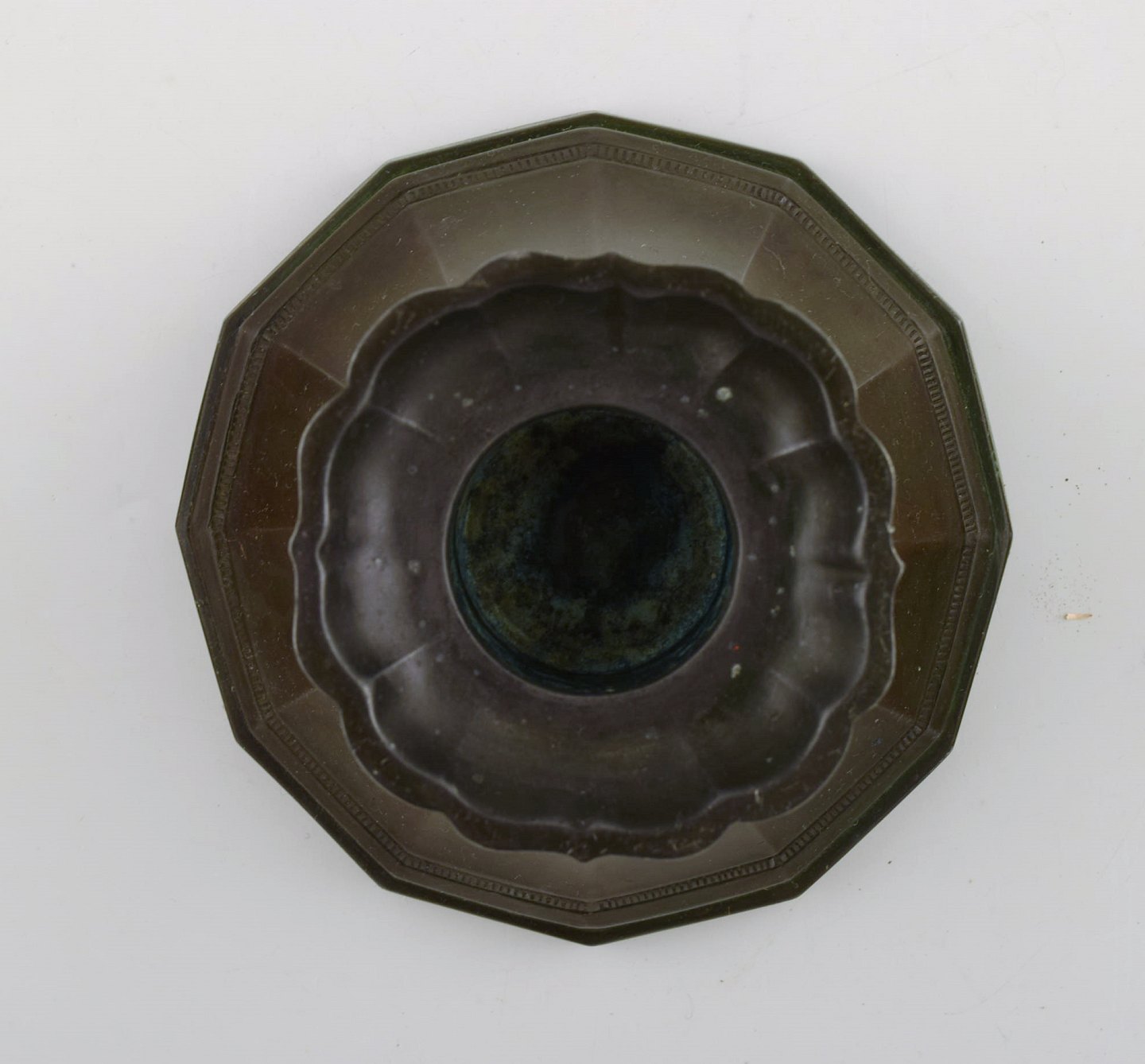 Just Andersen. Tidlig lysestage i diskometal. 1920/30'erne. I flot stand. Måler: 13 x 8 cm. Stemplet. Modelnummer: 02.