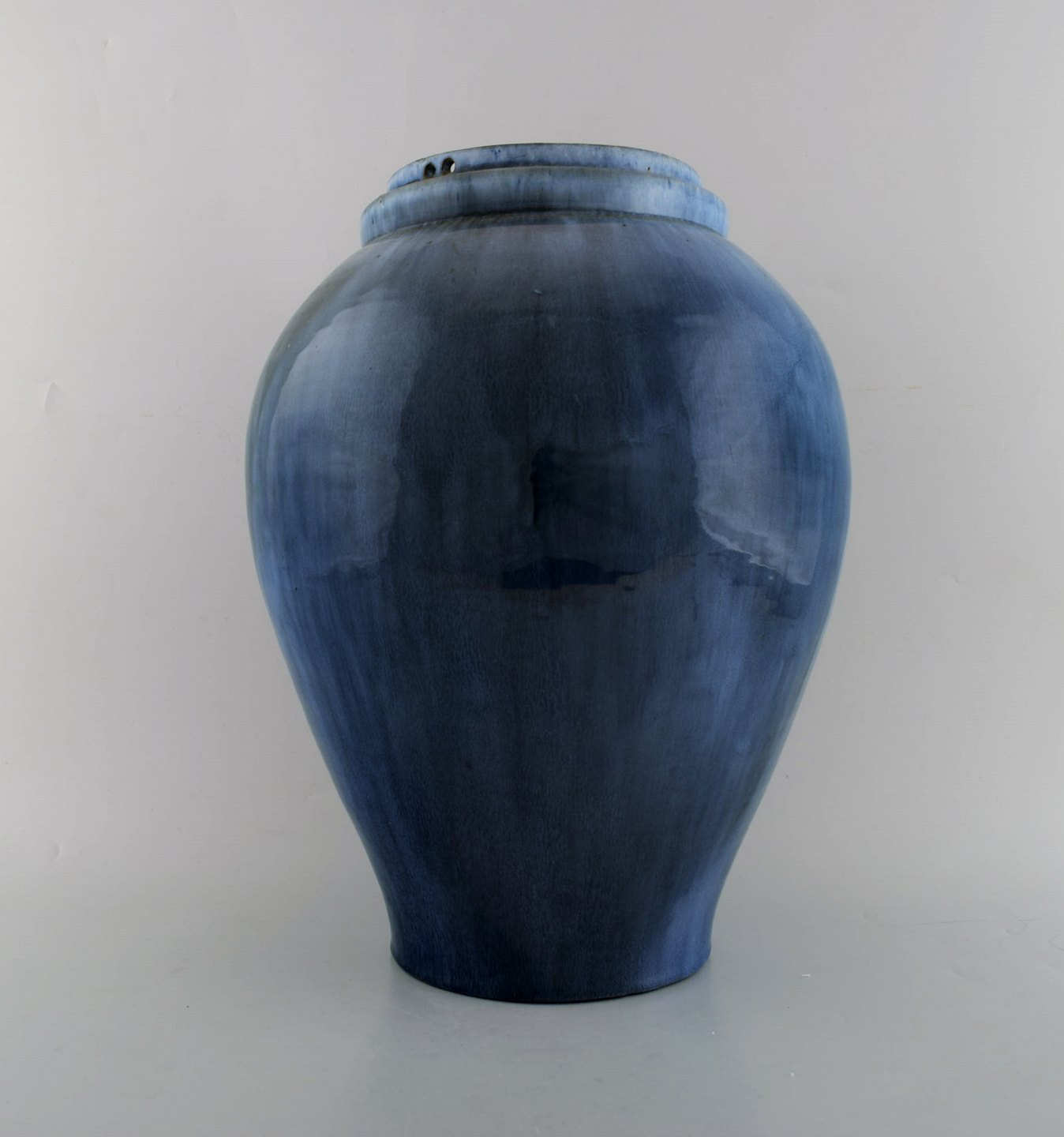 Hegnetslund Lervarefabrik. Stor hængevase i glaseret keramik. Smuk blå løbeglasur. 1950/60'erne.