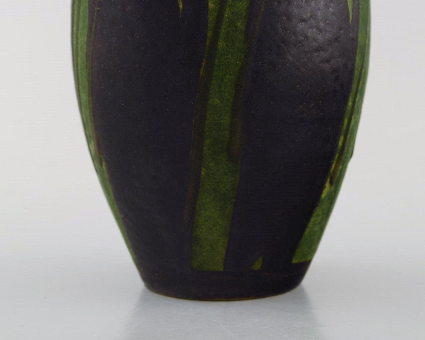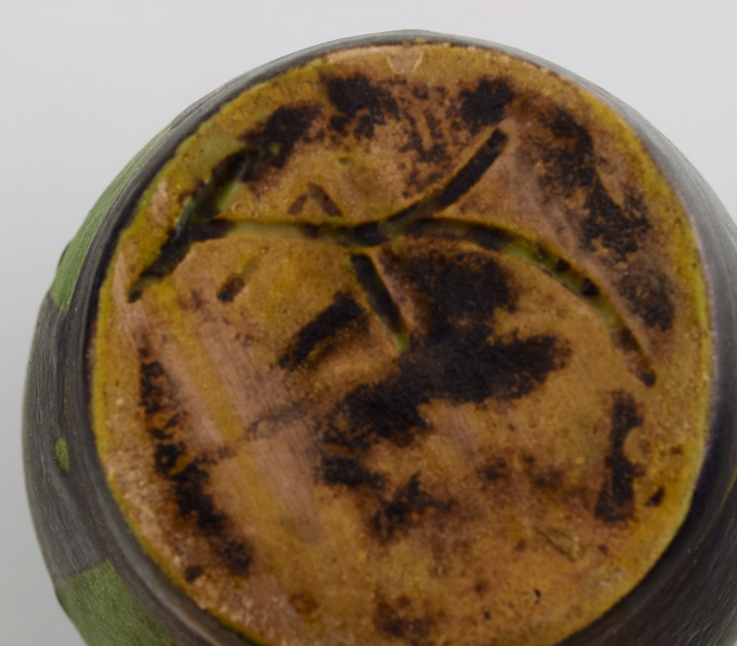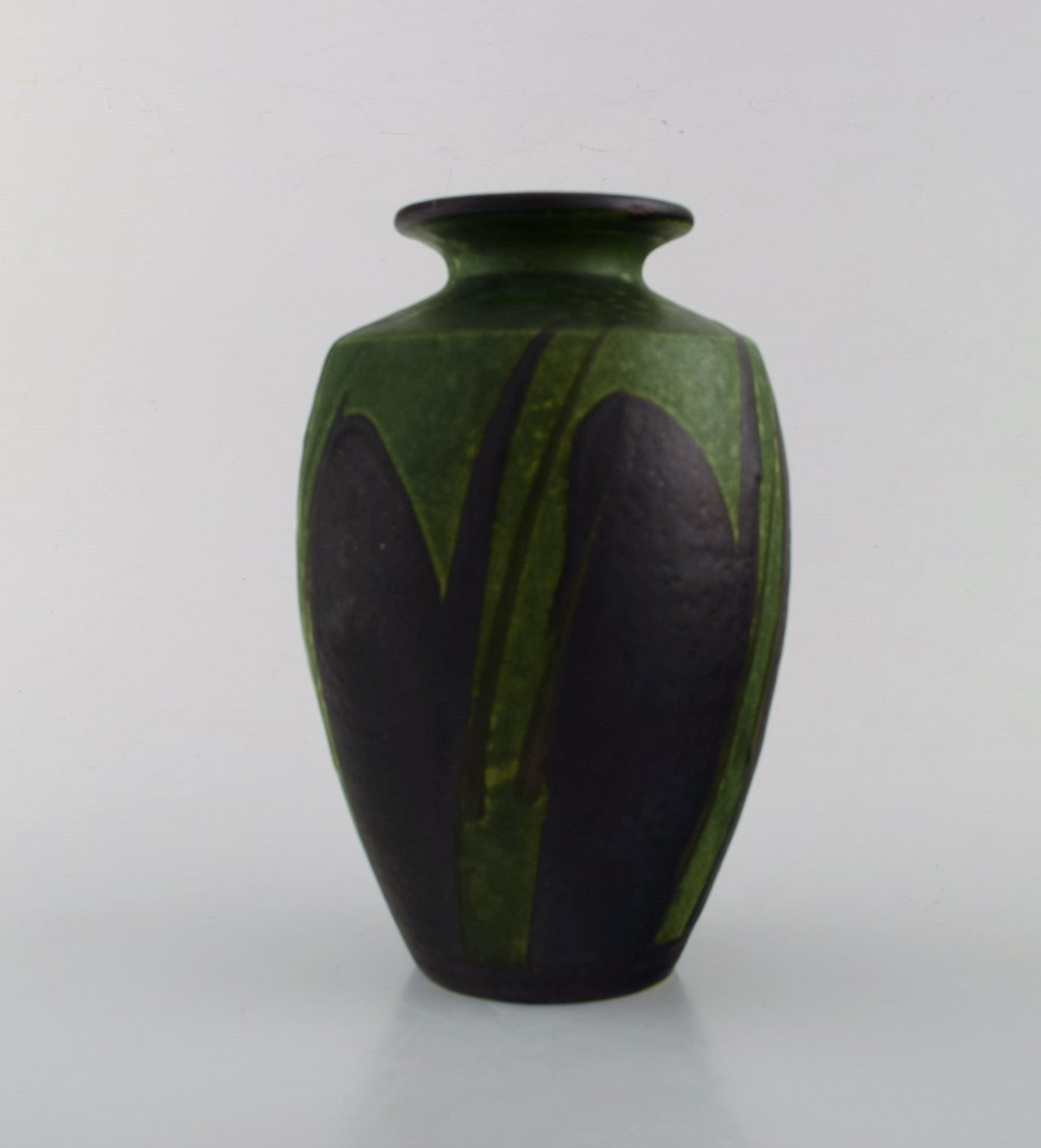 Kähler, HAK. Vase i glaseret keramik. Smuk glasur i grønne og sorte nuancer. 1930/40'erne. Måler: 18,5 x 12,5 cm. Stemplet. I flot stand.