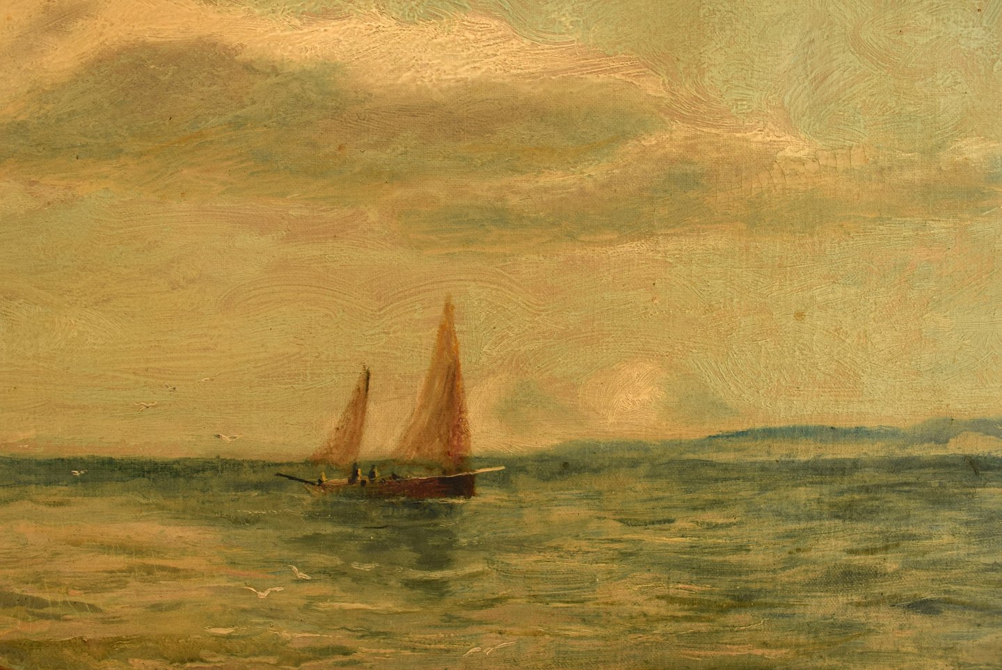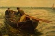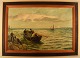 Bernard Benedict Hemy (1845-1913), britisk marinemaler. Olie på lærred. Fiskere går i land. 1880'erne. I flot stand. Signeret. Lærredet måler: 75 x 49 cm. Rammen måler: 8,5 cm.