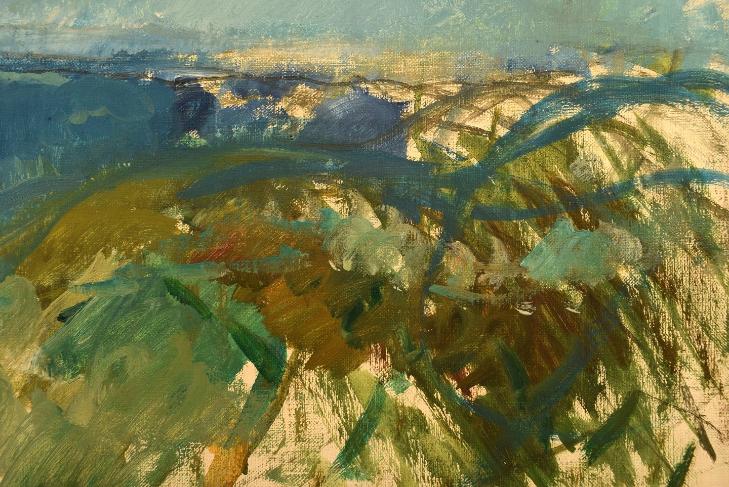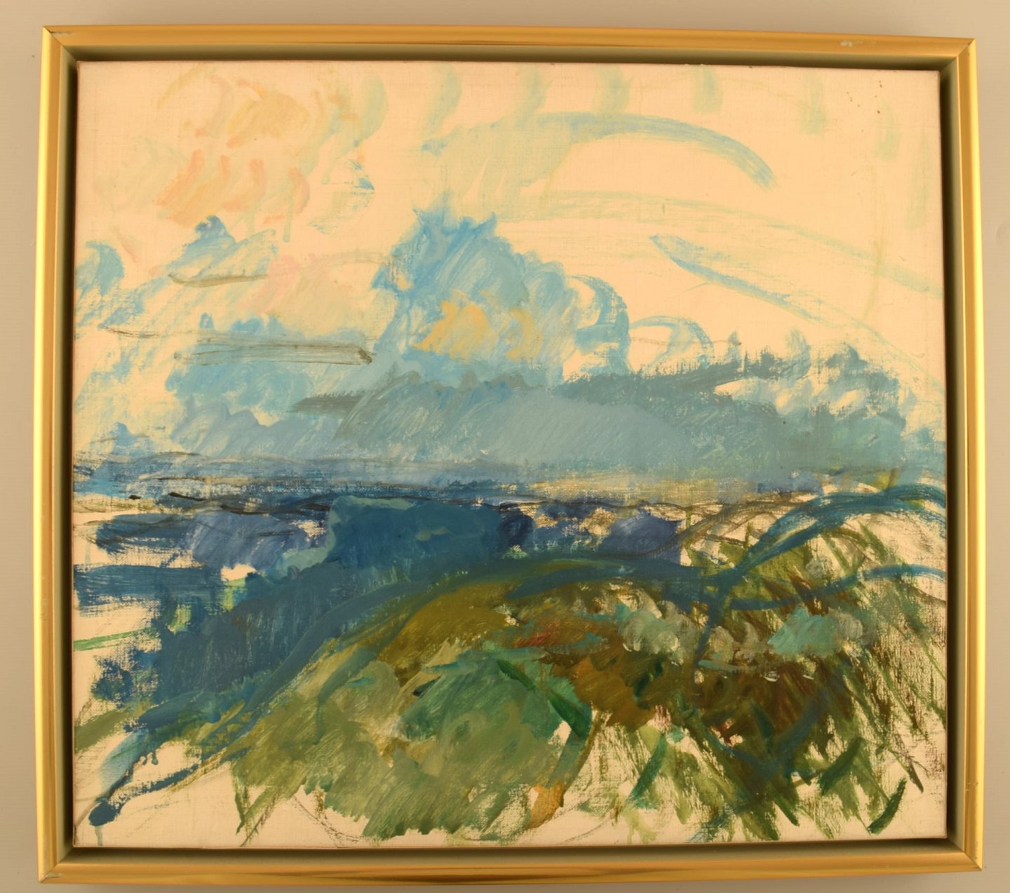 Jens Chr. jacobsen. Modernistisk landskab. Olie på lærred. Dateret 1966. I flot stand. Signeret. Lærredet måler: 46 x 41 cm. Rammen måler: 1,5 cm.