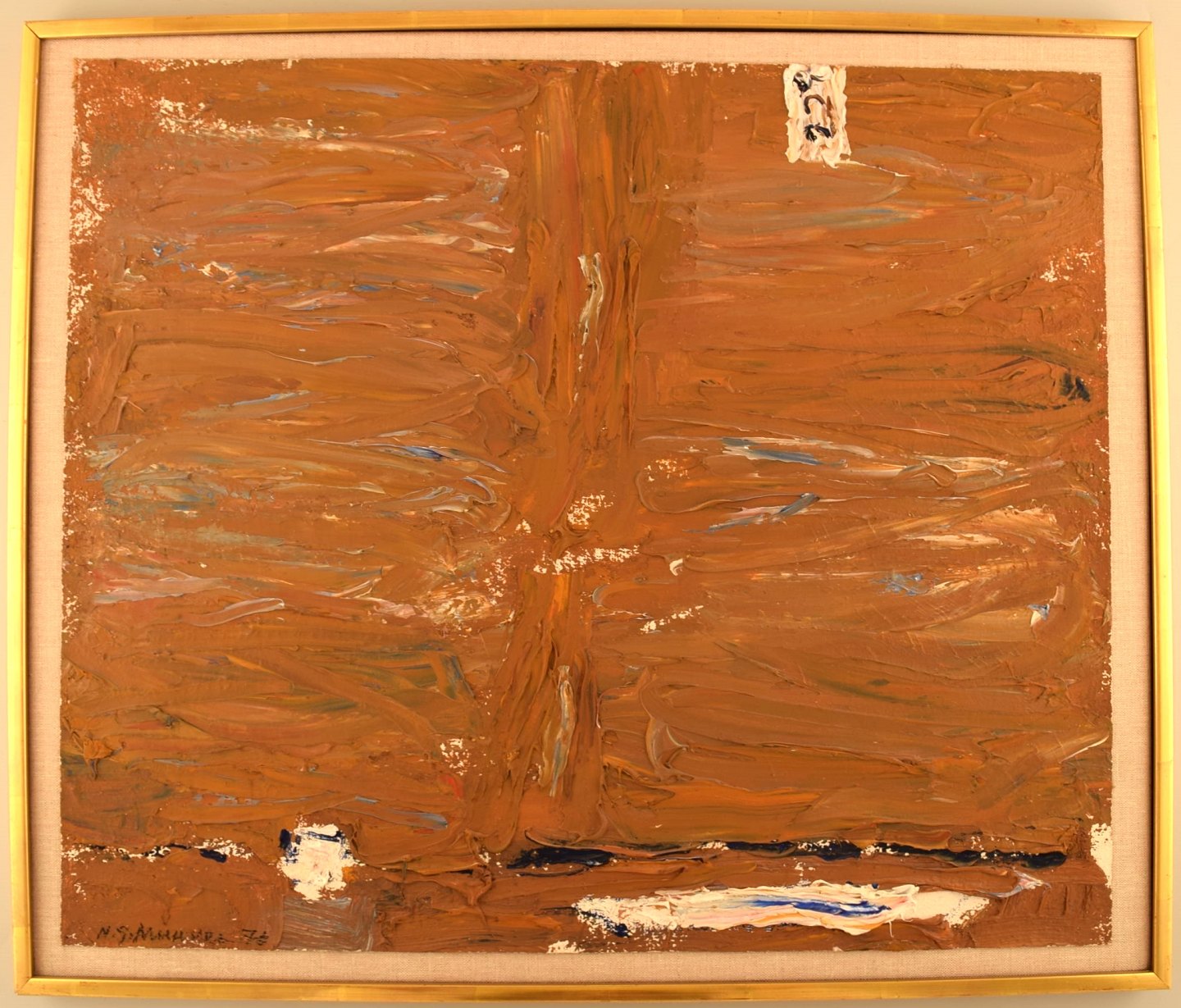 Nils-Göran Brunner (1923-1986). Svensk kunstmaler. Olie på lærred. Modernistisk komposition. Dateret 1975.