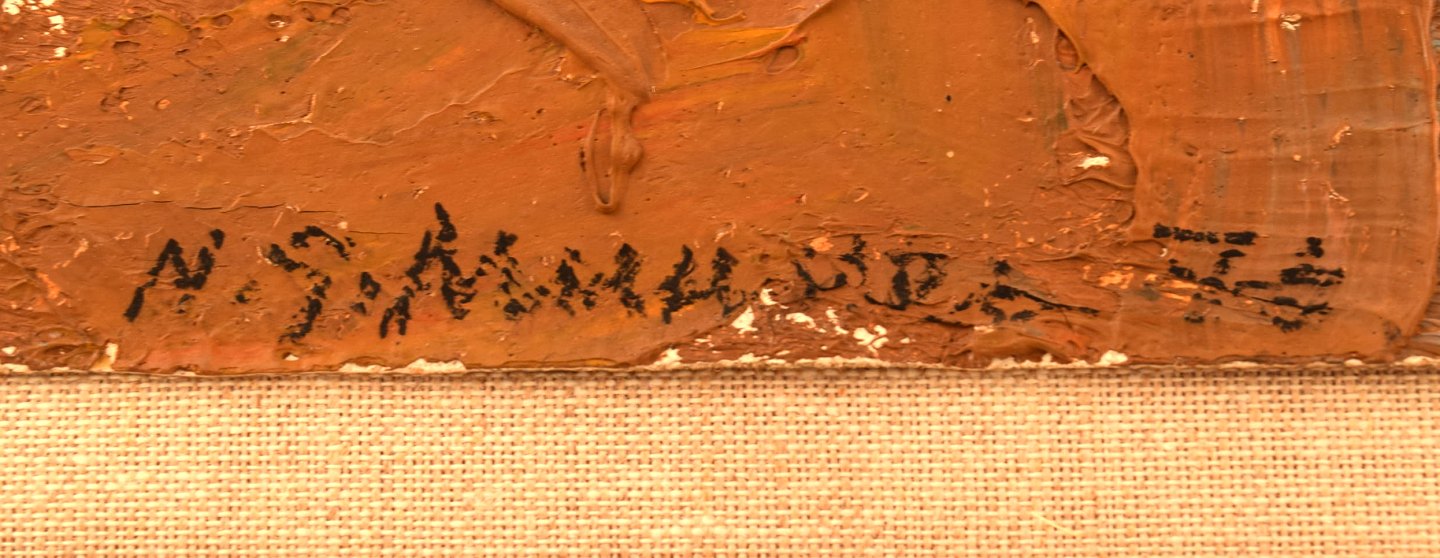 Lærredet måler: 60 x 51 cm.